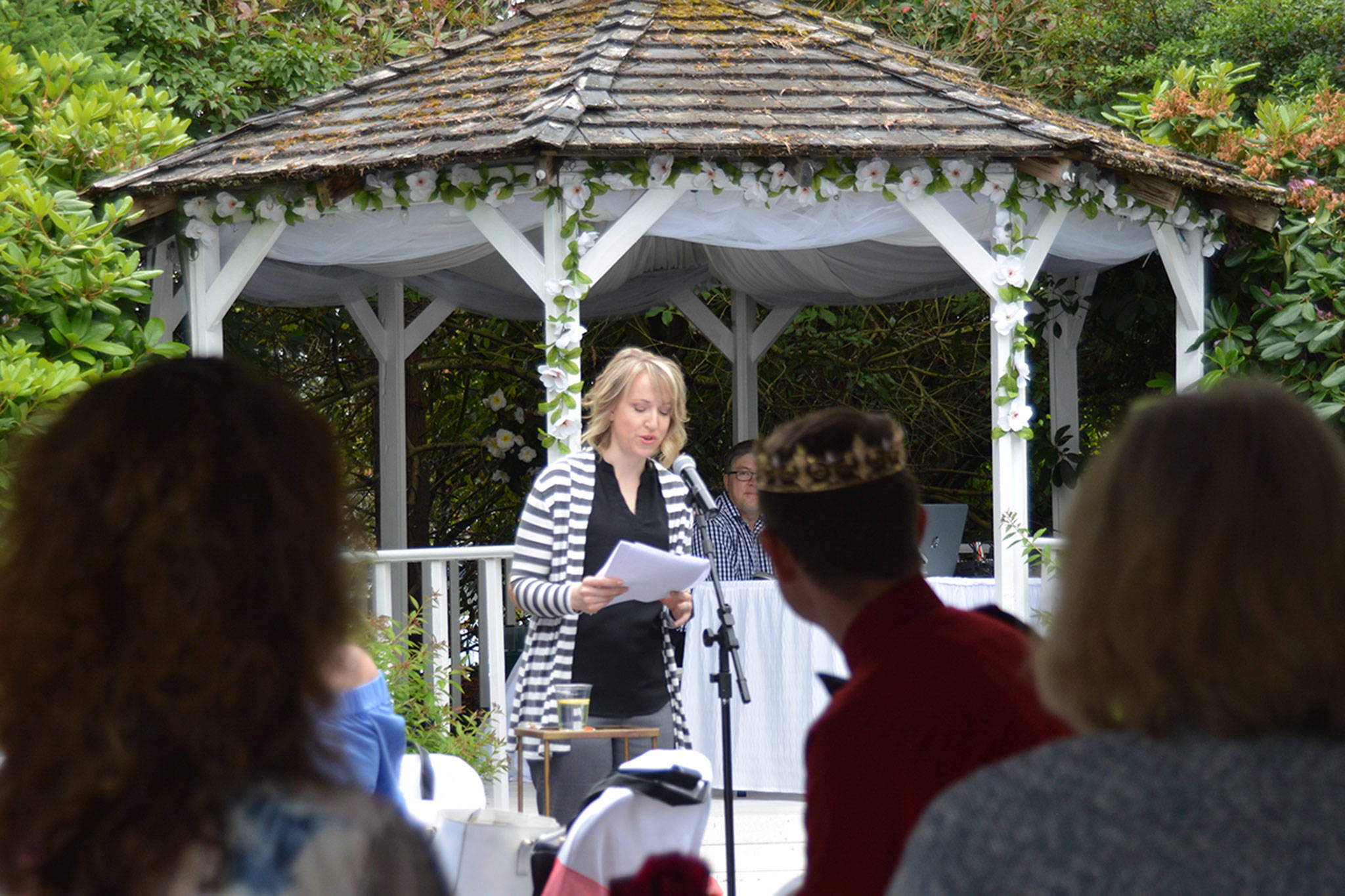Mayor Jon Nehring honored her with a bouquet of roses at the end of the event.