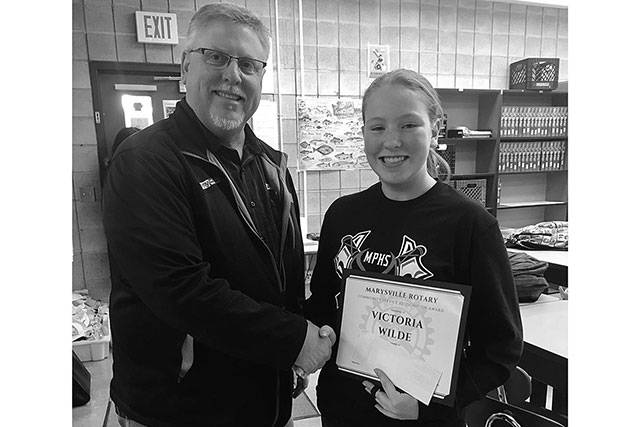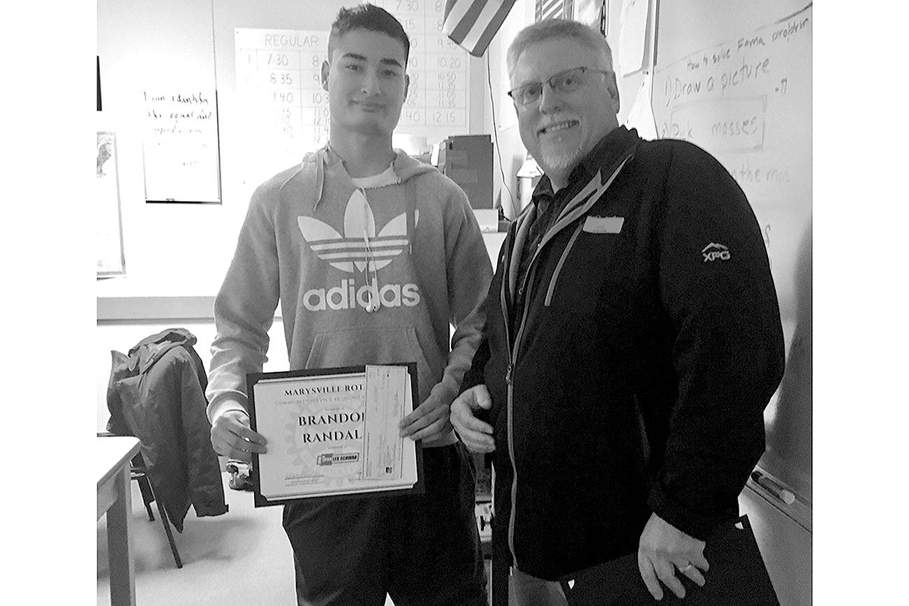 MARYSVILLE – The Rotary Club presented Brandon Randall and Victoria Wilde of Marysville-Pilchuck High School with the December Community Service Recognition Award Dec. 11. Randall is senior taking AP English, AP Chemistry and Pre-Calculus.