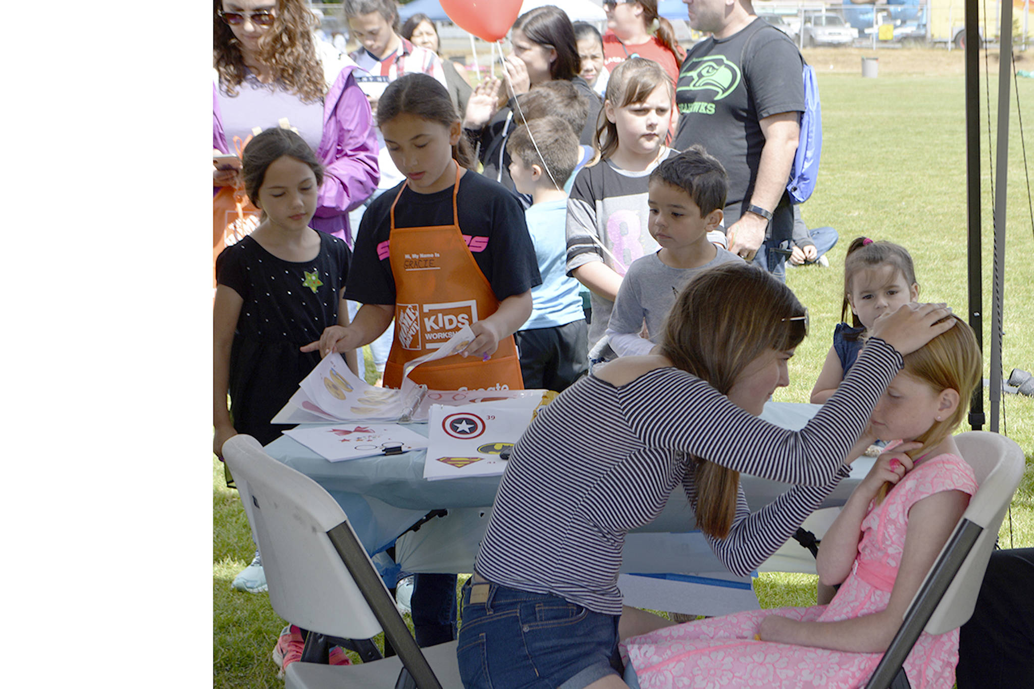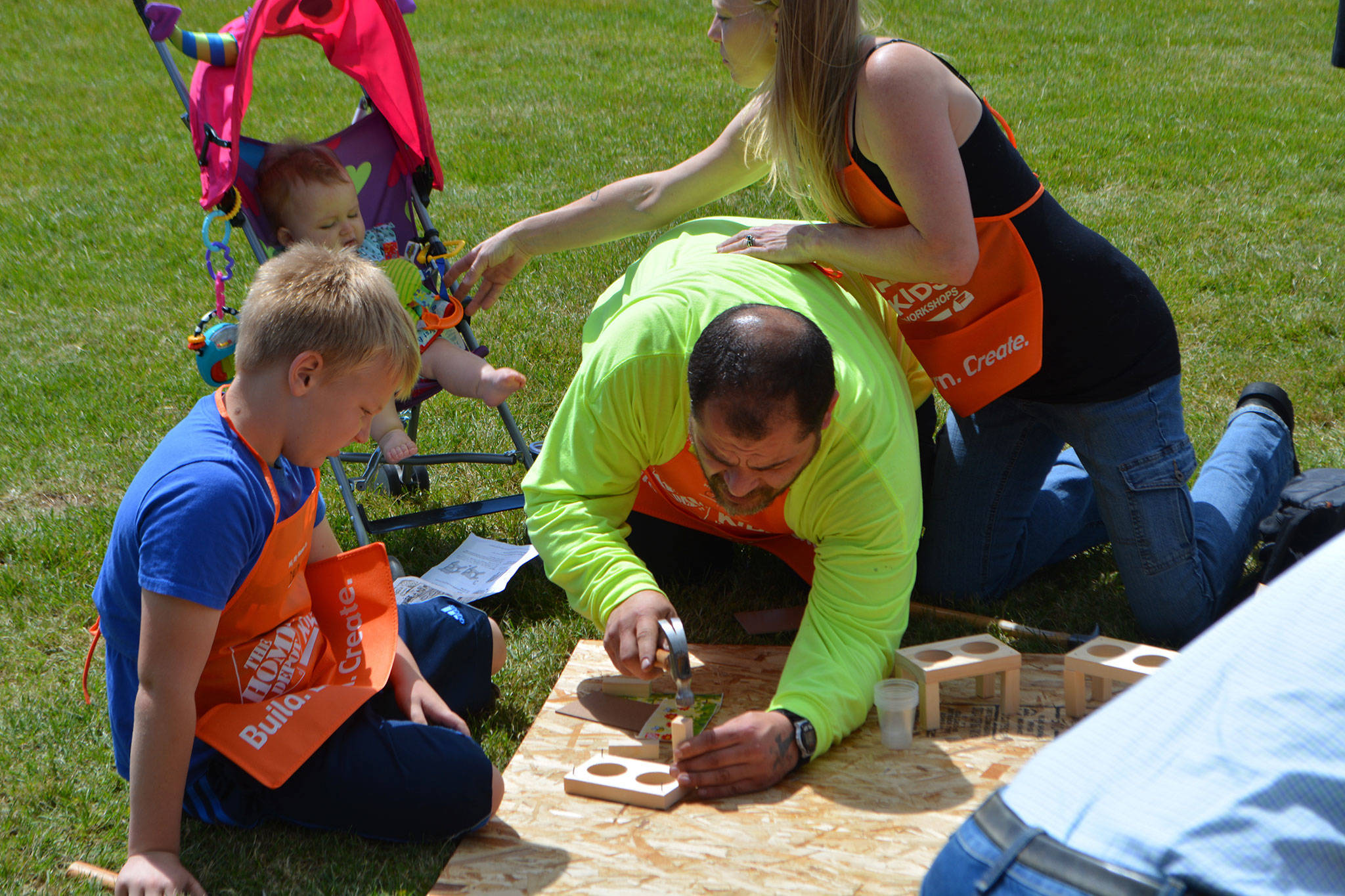 Dads, moms and kids made decorative small planter boxes using kits and hammers from Home Depot, which advertised its free Kids Workshops on the first Saturday of every month from 9 a.m. to noon.