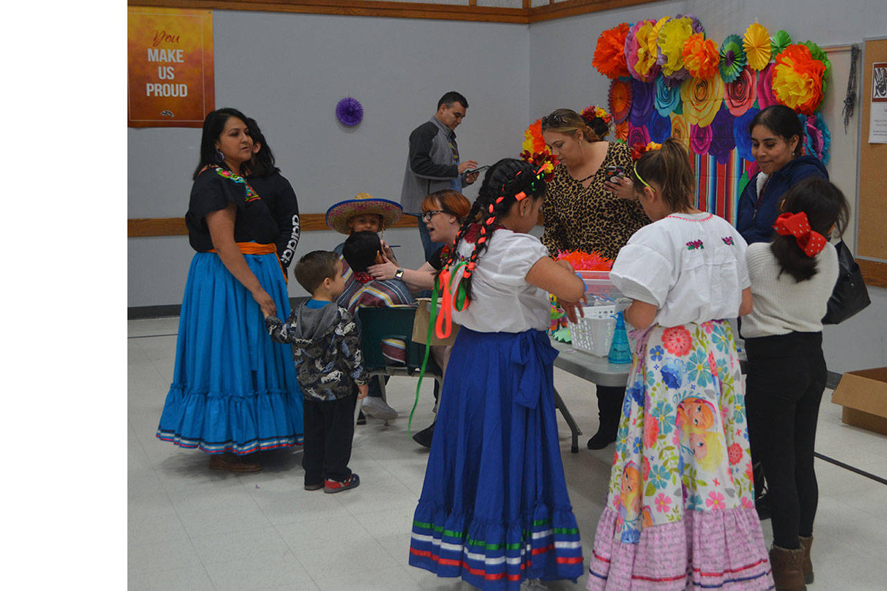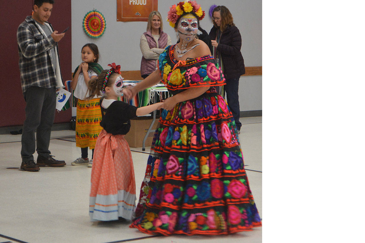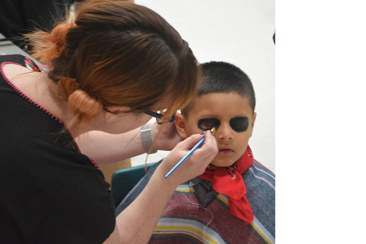 First-grade teacher Xochitl Palacios again organized the event, along with Pricilla Smith and others with the PTA. Student Adrian Rodriguez looked like he had two black eyes, but so did many of the other boys and girls, 14 of whom performed the Mexican Hat Dance and a song from the animated movie “Coco.” They painted their faces to look like skeletons with the belief that the living and the dead intermingle. The boys wore serapes and cowboy hats, while the girls wore colorful dresses.