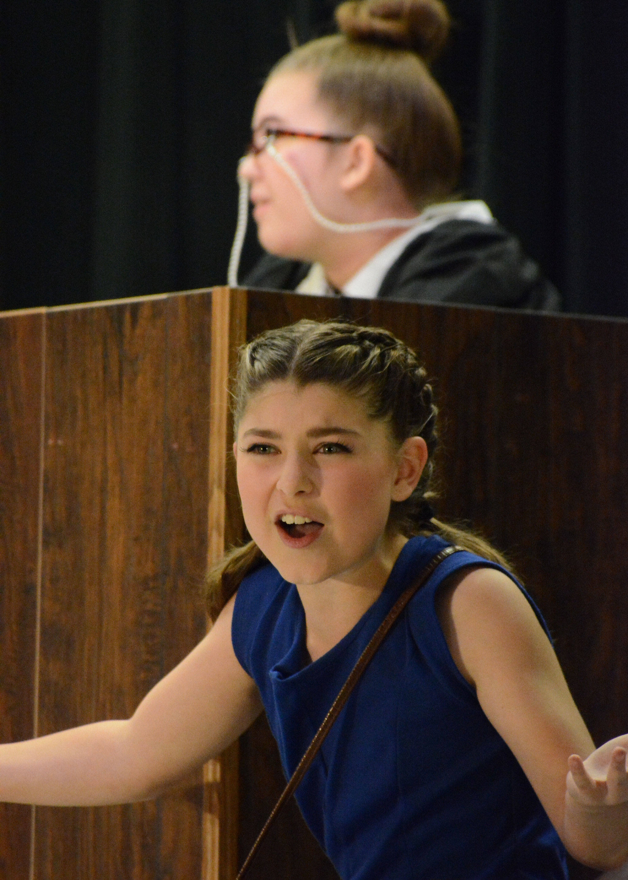 Mrs. Worthington (Adeline Warner) then takes the stand, and Santa’s attorney Winklebottom (Julianna Kilroy) puts her on the defensive. When Worthington says she “thinks” she’s a good mom, Winklebottom attacks, providing numerous instances when she wasn’t. The clinching statement was when Winklebottom asked why Mrs. Worthington did buy the gift for her daughter herself if she was such a good mom.