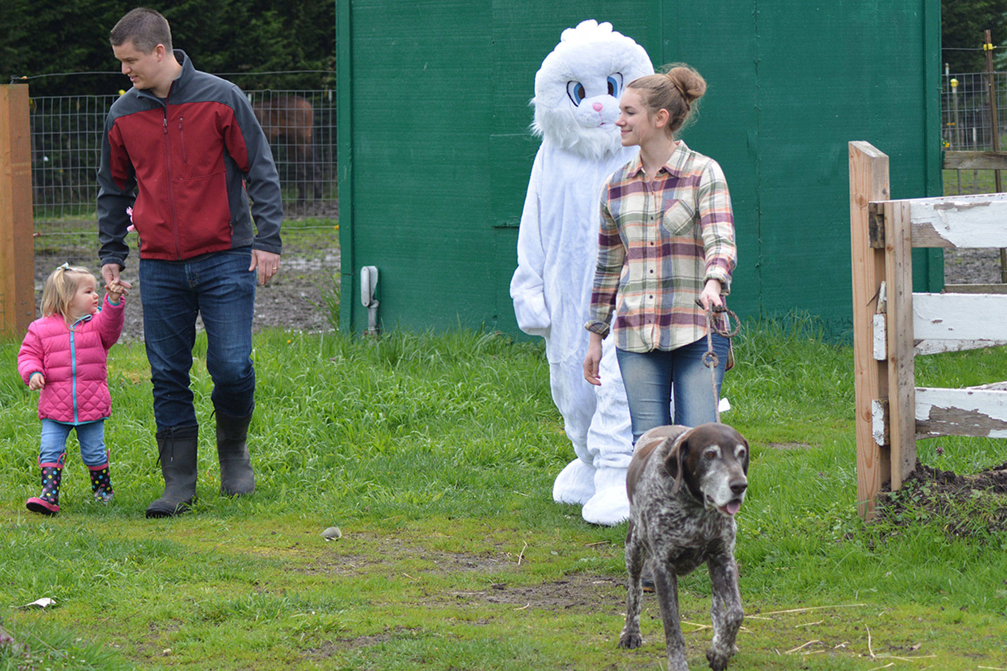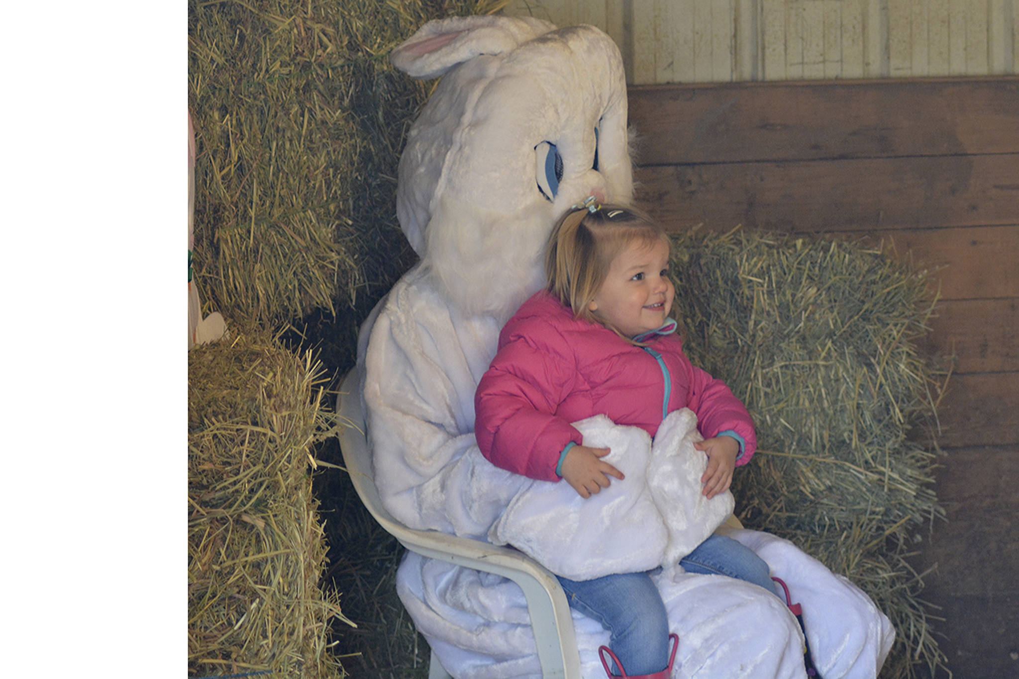 Although Easter itself was still eight days away, the bunny appeared at the All Breed Equine Rez-Q, giving out candy to children and posing with them for photographs.