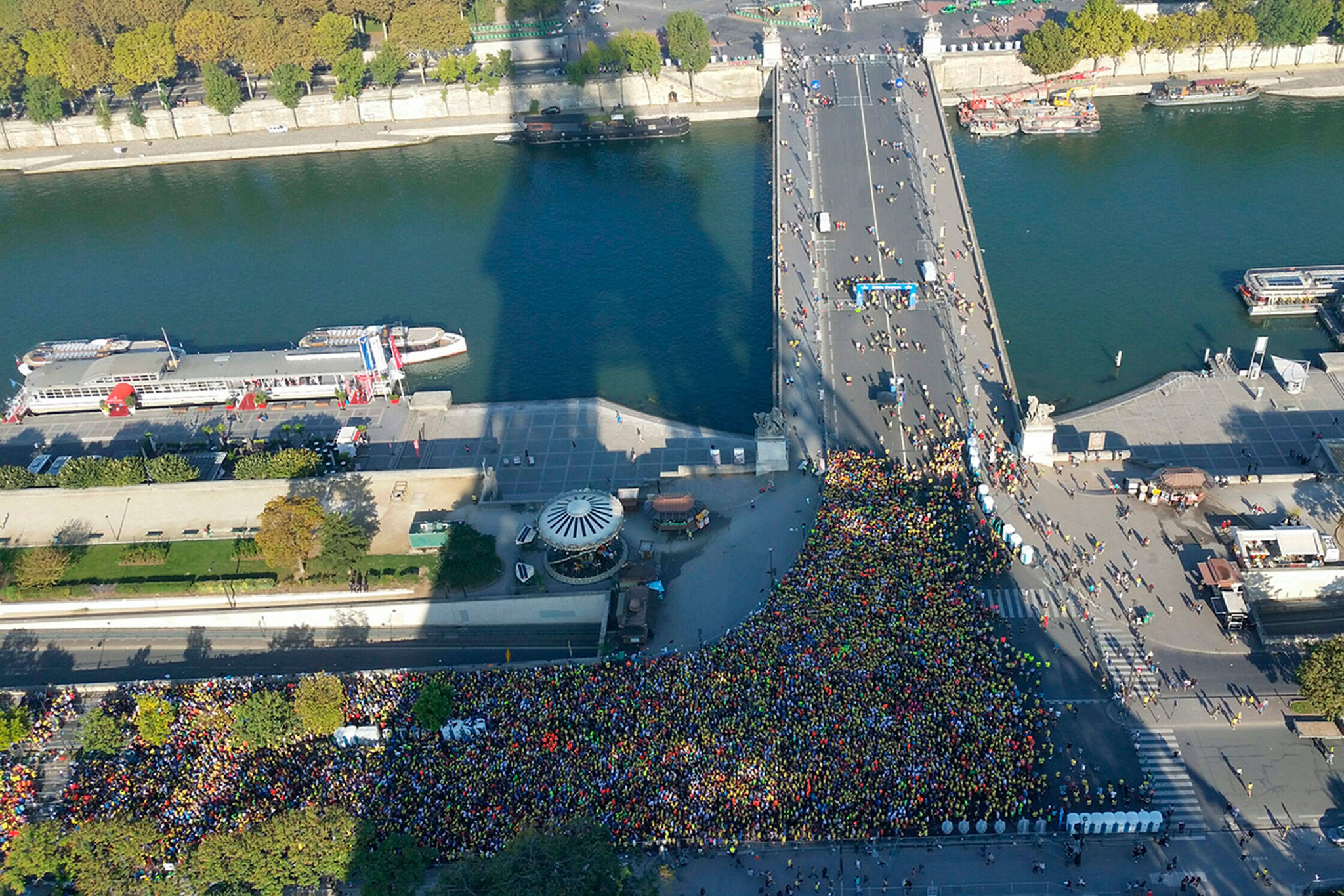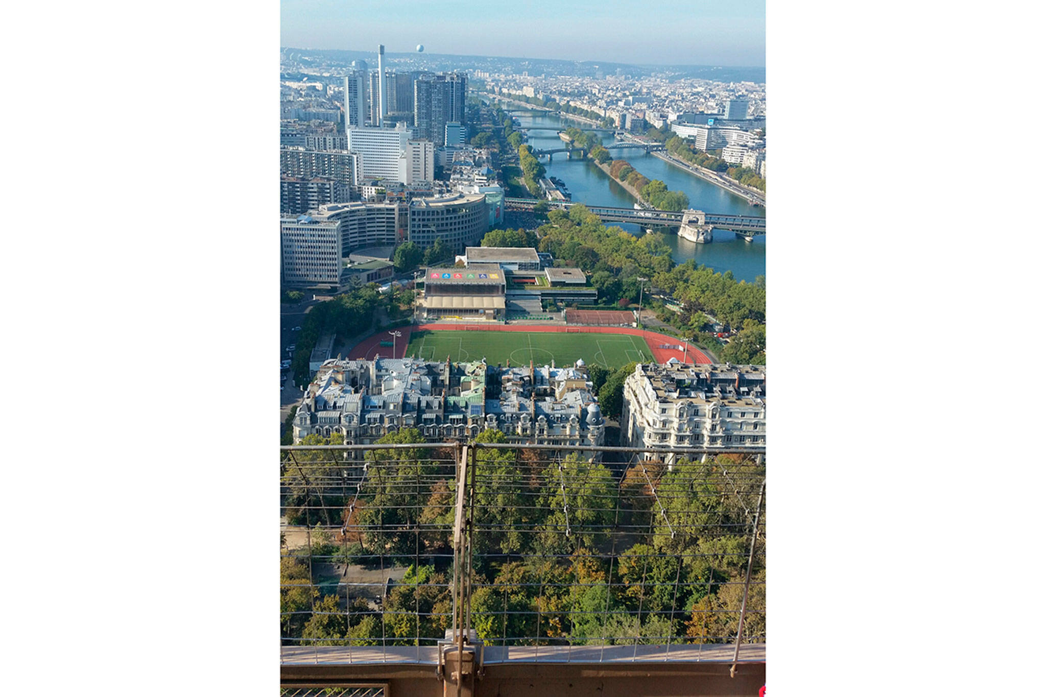 On the third day we went to the Eiffel Tower. It also was surprisingly cheap, 11 euros. We only went up to the second floor, but still had fantastic views of the entire city, including the Seine River right below. We were there on the day of a half-marathon, so thousands of runners were waiting for the start right below us. Considering the number of terror attacks we read about in Paris, it was a little unnerving. But I felt safer when I saw numerous police with assault rifles.