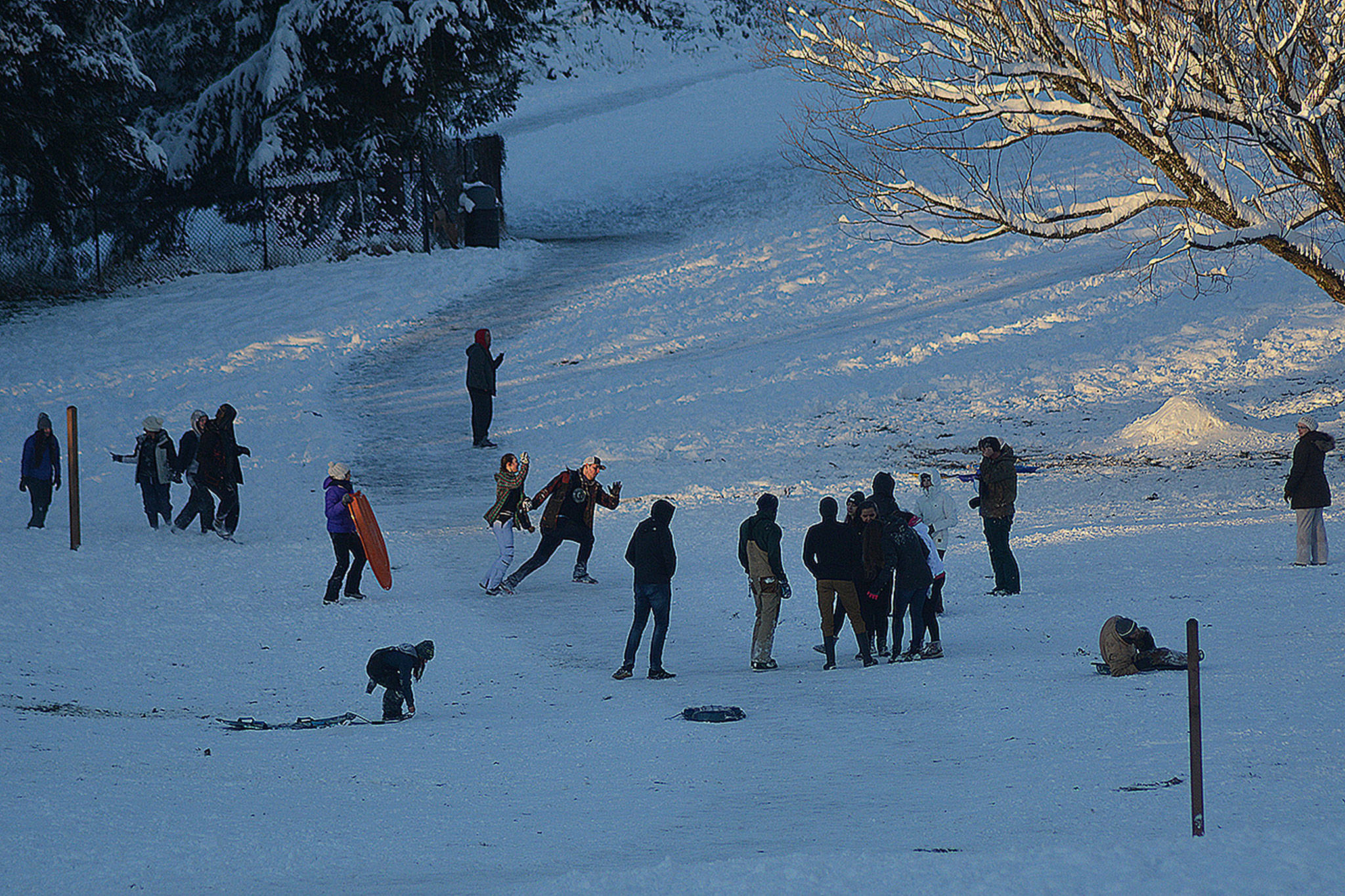 One very popular place in Marysville is Jennings Park. Hundreds of kids, teens and even adults went there Monday for sledding, inner tubing, snowboarding, discing and anything else they could find to slide down the slippery slopes.