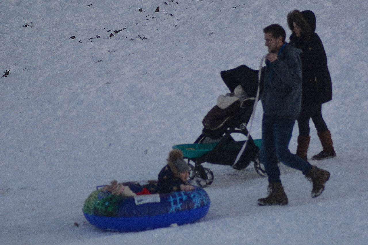 Another family had a large remote-control vehicle spinning around the park, kicking up snow everywhere. A man said earlier that vehicle had pulled around some kids on sleds.