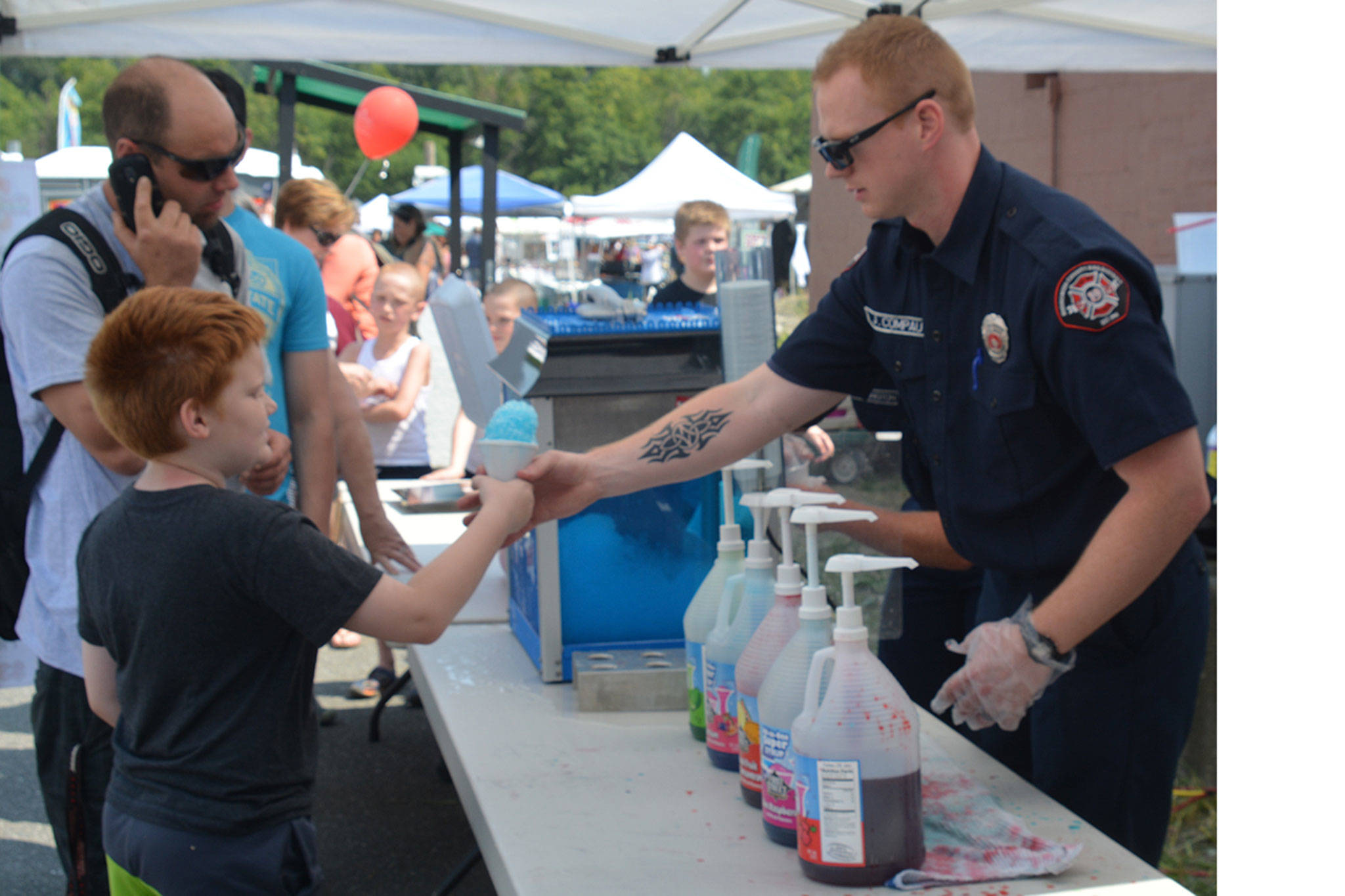 A variety of food was avaiable, including sno-cones sold by firefighters. There were numerous booths, including one that sold cowboy supplies, and free bands to listen to, including a folk one.