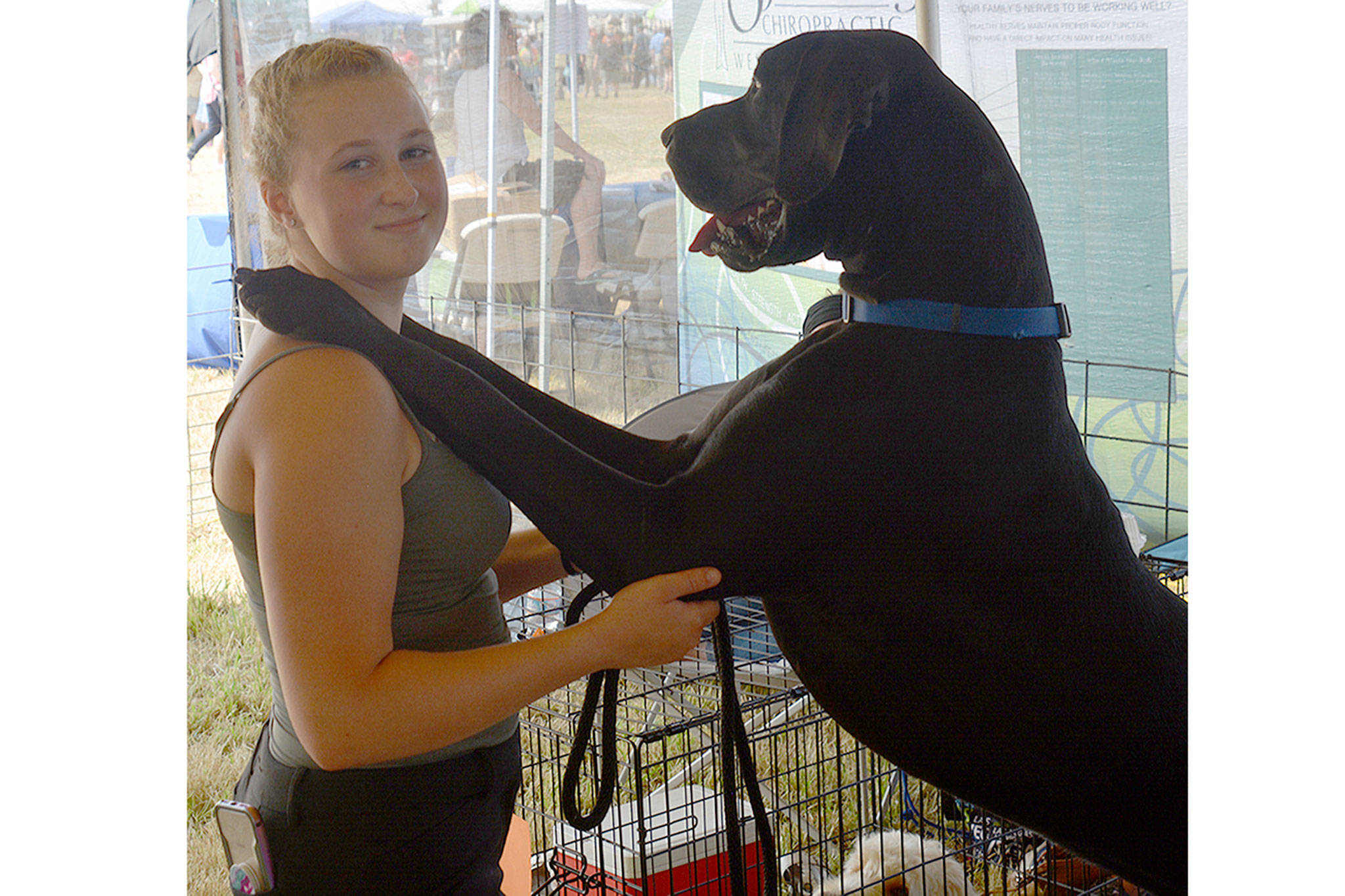 Cory McLeod of Marysville entered a rooster in the competition, and Emily O’Keefe of Oak Harbor entered her great dane Hodor, who at 10 months already weighs 120 pounds.
