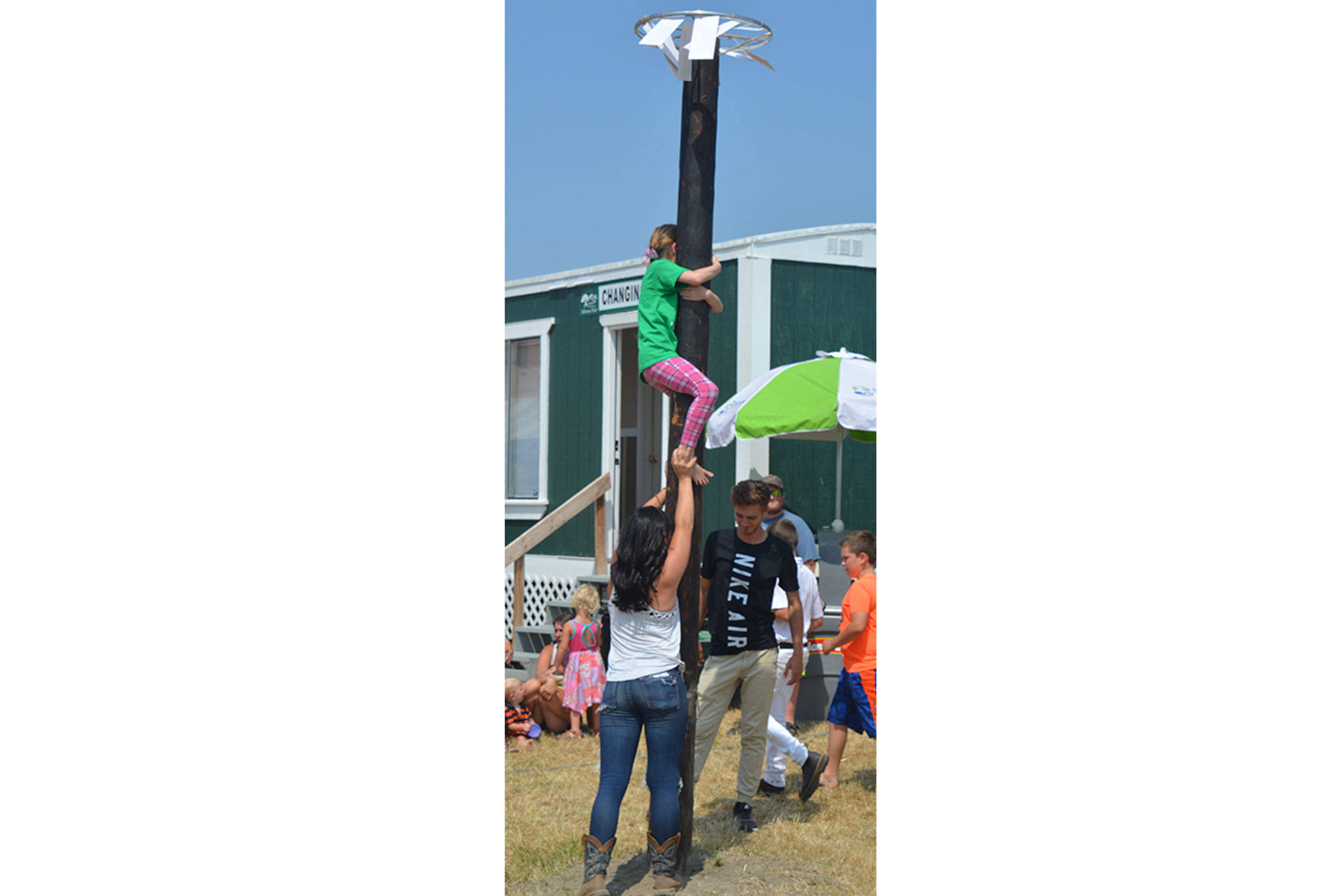 A very popular activity with a long line was trying to climb a greased down pole. If you made it to the top, there were envelopes with prize money in them. Midway through the fair almost a handful had accomplished the feat, one worker said.