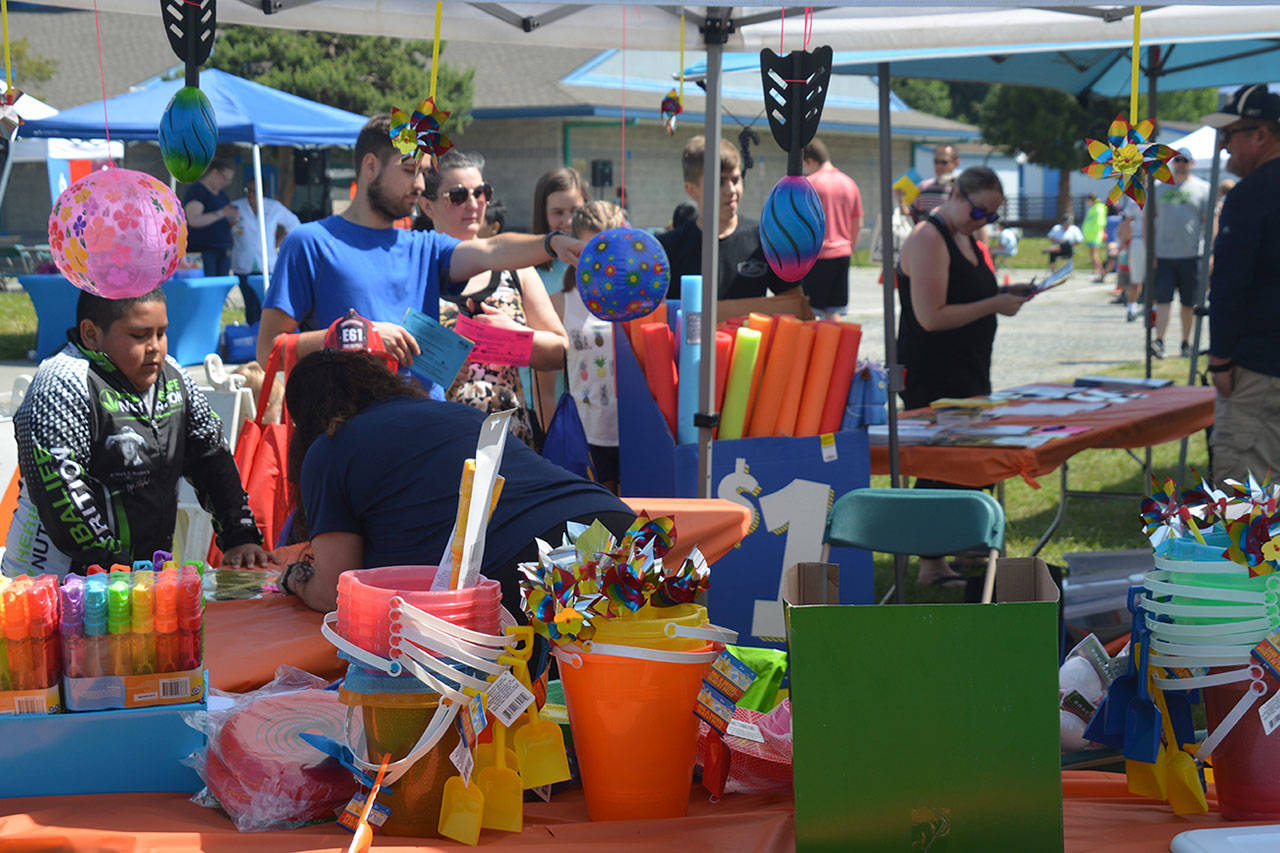 Such as at the Marysville Tulalip Chamber of Commerce booth kids who played Ladder Ball won a free ticket for a ride at their carnival June 7. At the Tulalip Lions Club booth, kids could take home free books.