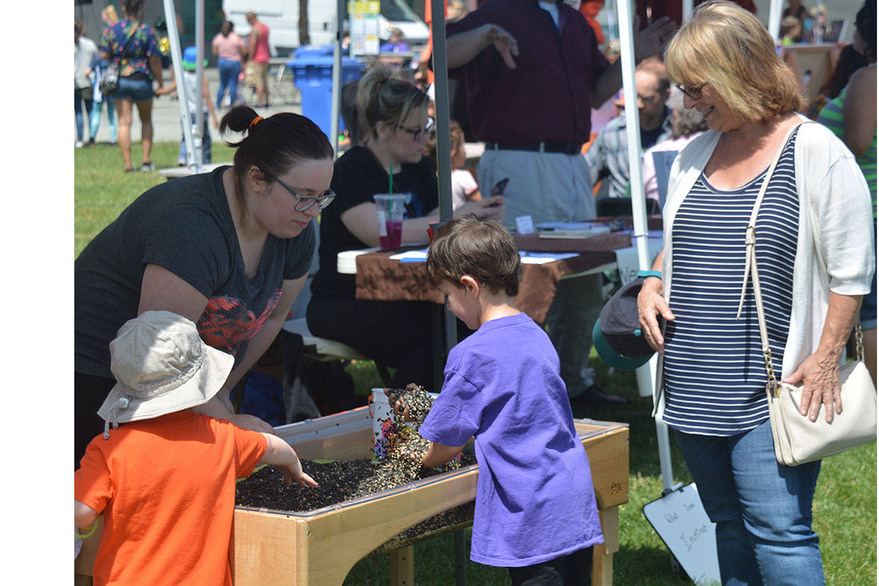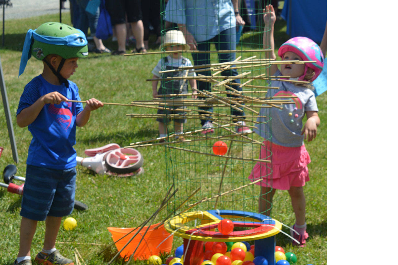 At another booth, Kalleigh and Brantley Duffield played with sticks and balls in a tower.