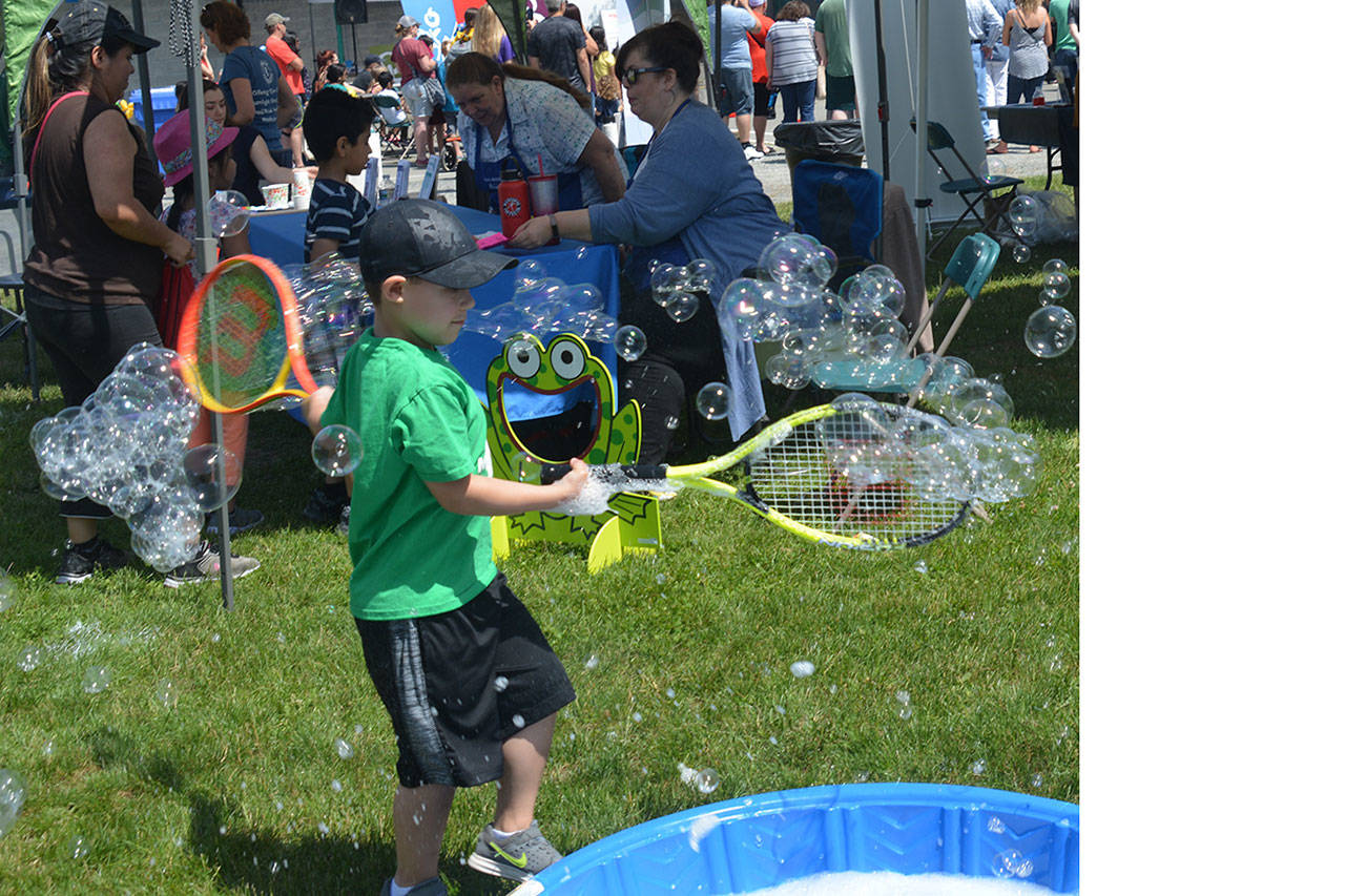 Maddex Behrendt enjoyed himself grabbing two tennis rackets that had been soaking in soap and twirling around creating bubbles at the Marysville School District booth.