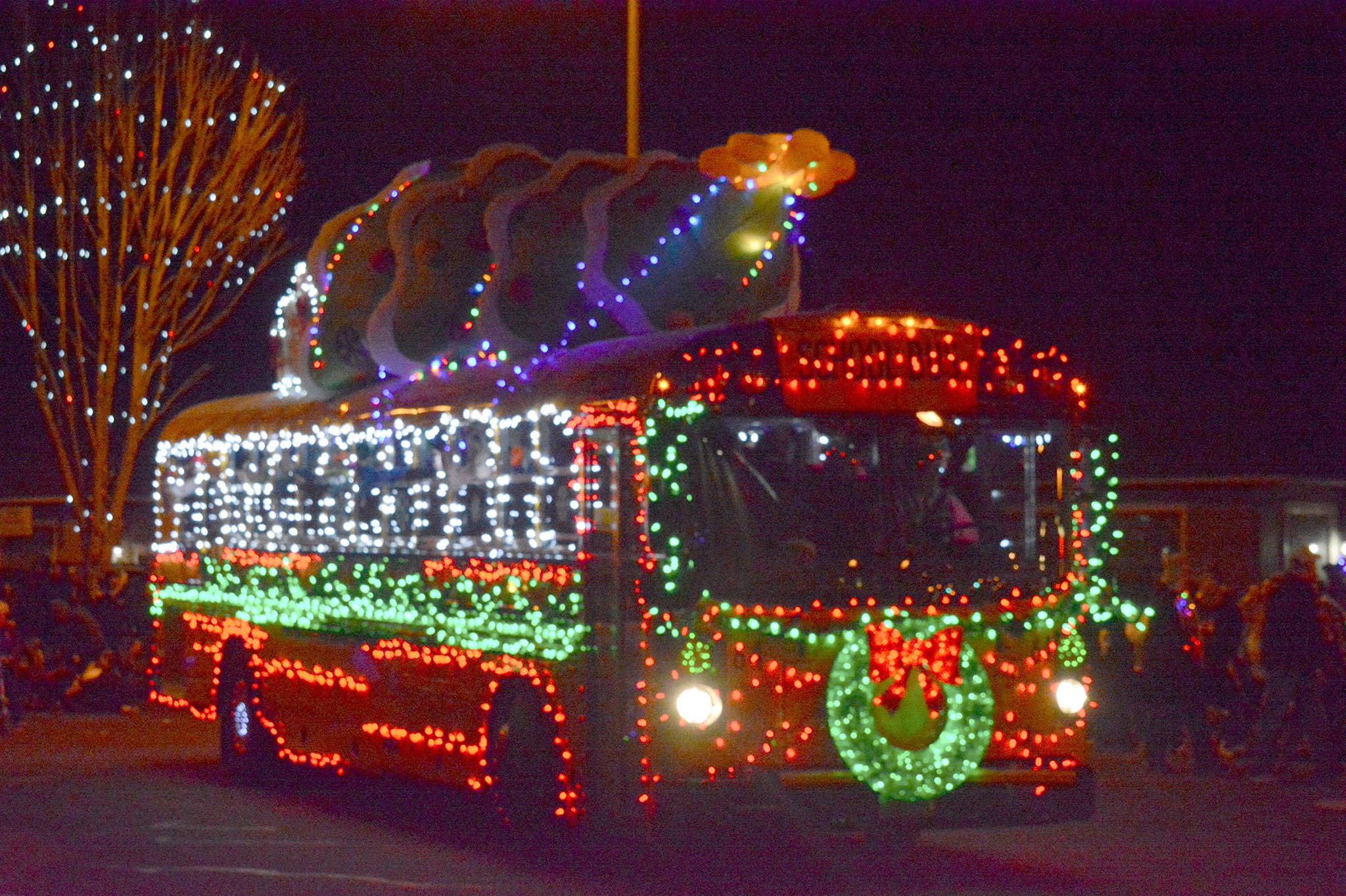 The Marysville School District also got involved with a well-lighted school bus with a giant, inflatable tree tied to its top.