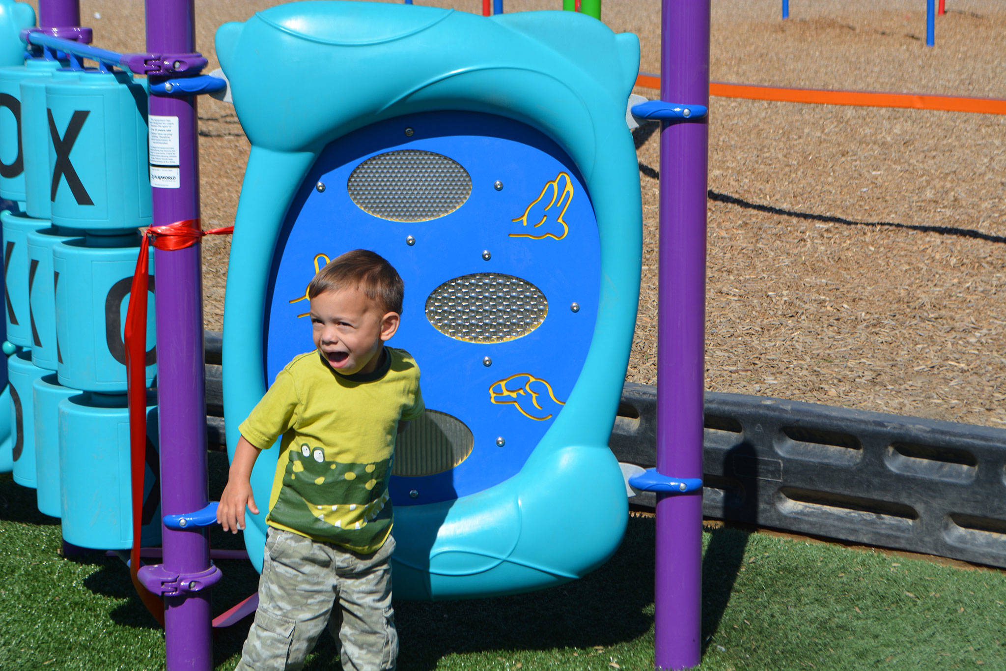 The foundation donated $45,000 to purchase and install 1,125 square feet of Forever Lawn Playground Grass that includes a music area: congas, casabas, chimes and vibes instrument; and a Play Panel that includes a tic-tac-toe, driver, tactical and rainbow.