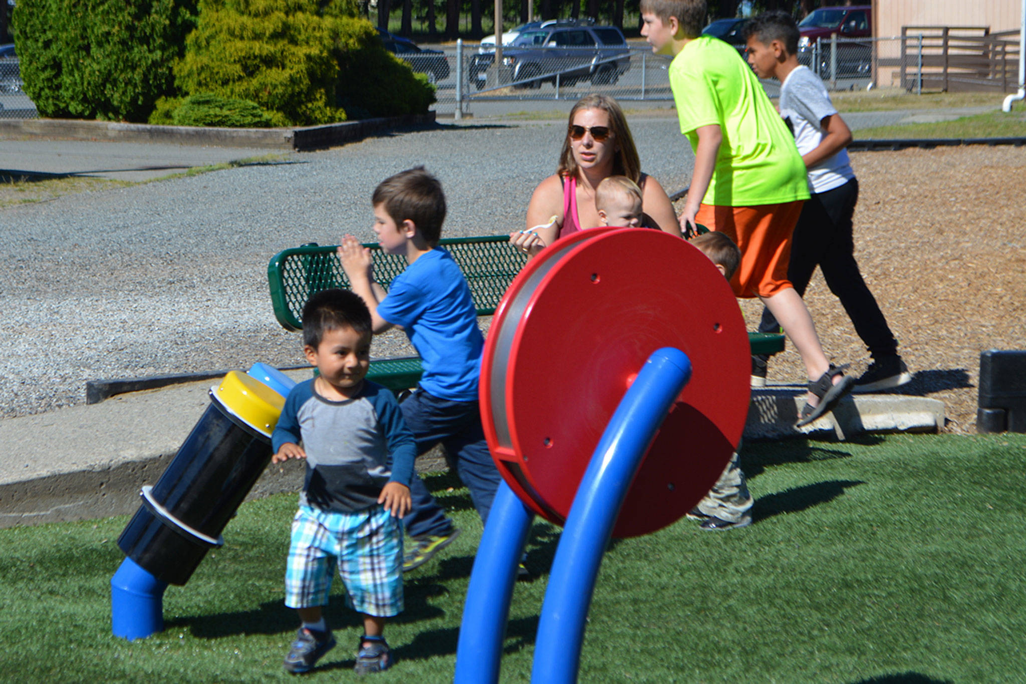 Leah cut the ribbon to the playground, while kids jumped in and played right afterward.