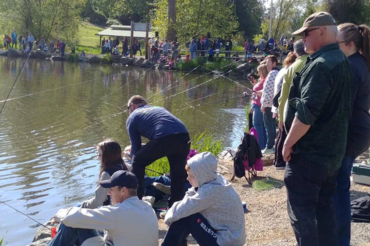 Members of the Everett Steelhead and Salmon Club loaned out fishing poles and bait to kids ages 2-12 who didn’t have them. The Marysville Kiwanis Club served over 200 pancake breakfasts with the help of the Boy Scouts and its new Aktion Club of special needs adults.