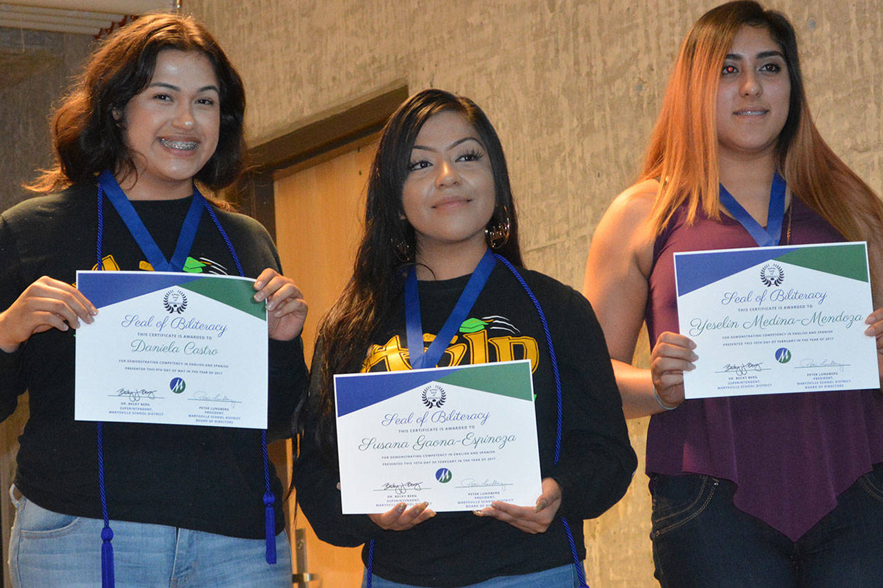 Randy Privrasky Memorial: William Cozart, Daniel Kiesz Seal of Biliteracy: Susana Gaona-Espinoza, Maria Gonzales Perez, Yeselin Medina-Mendoza, Cristhian Sandoval, Daniela Castro-Martinez, Britney Sipsip