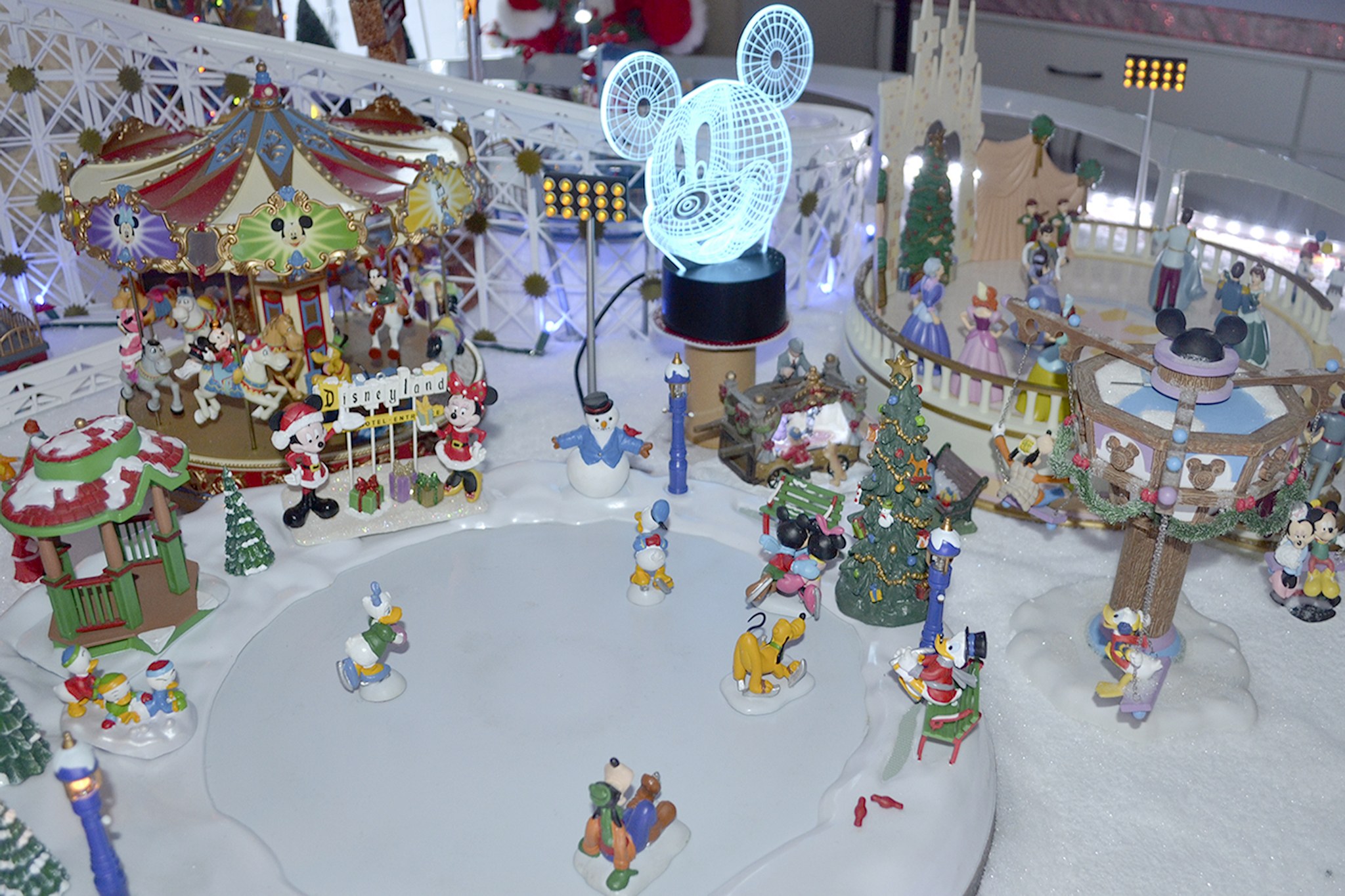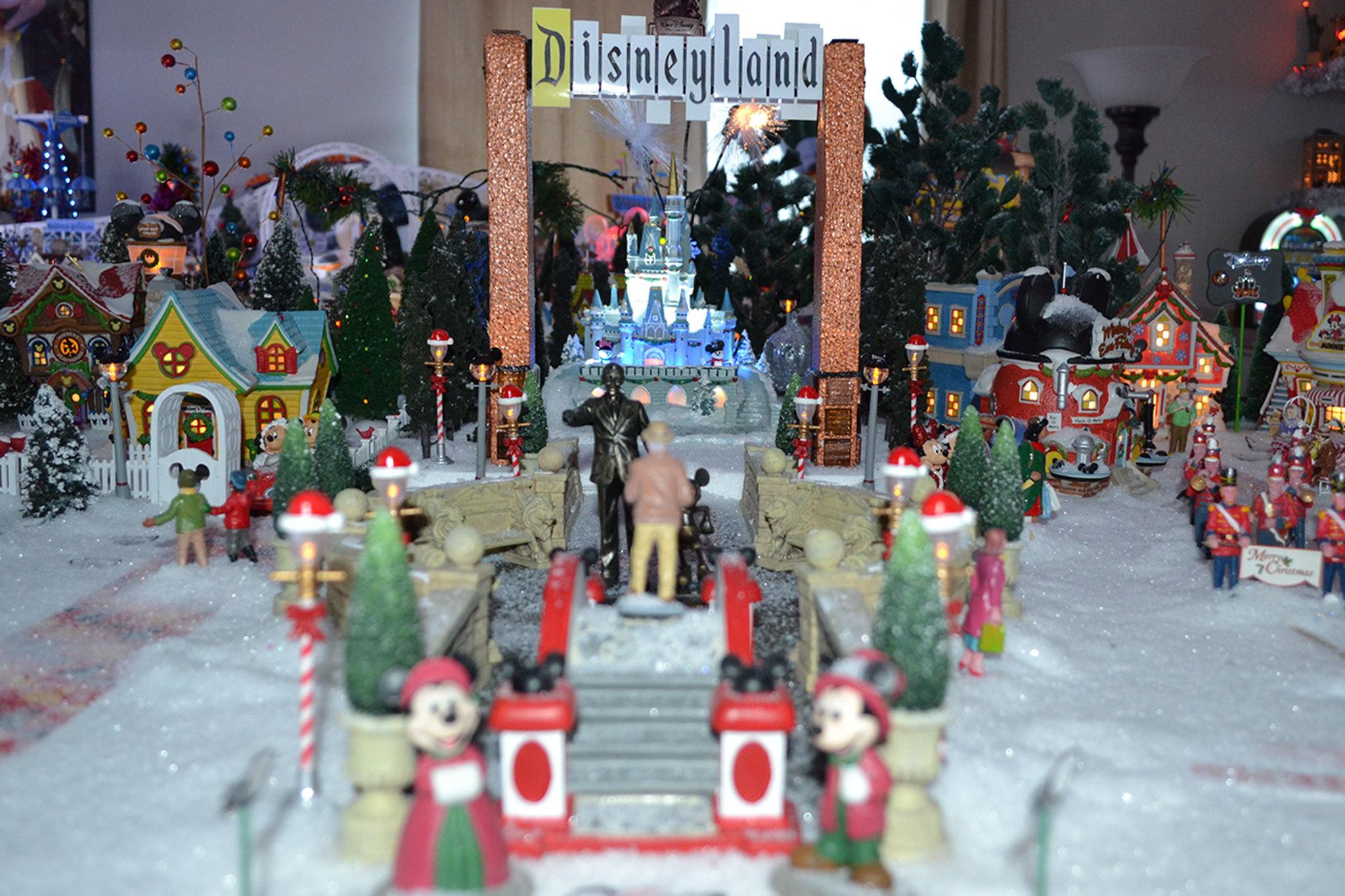 In a room that is a converted garage the entire space is filled with shelves of different Christmas villages. There’s another Christmas tree, of course. But Bussey’s pride and joy is her replica of Disneyland in a Christmas theme.