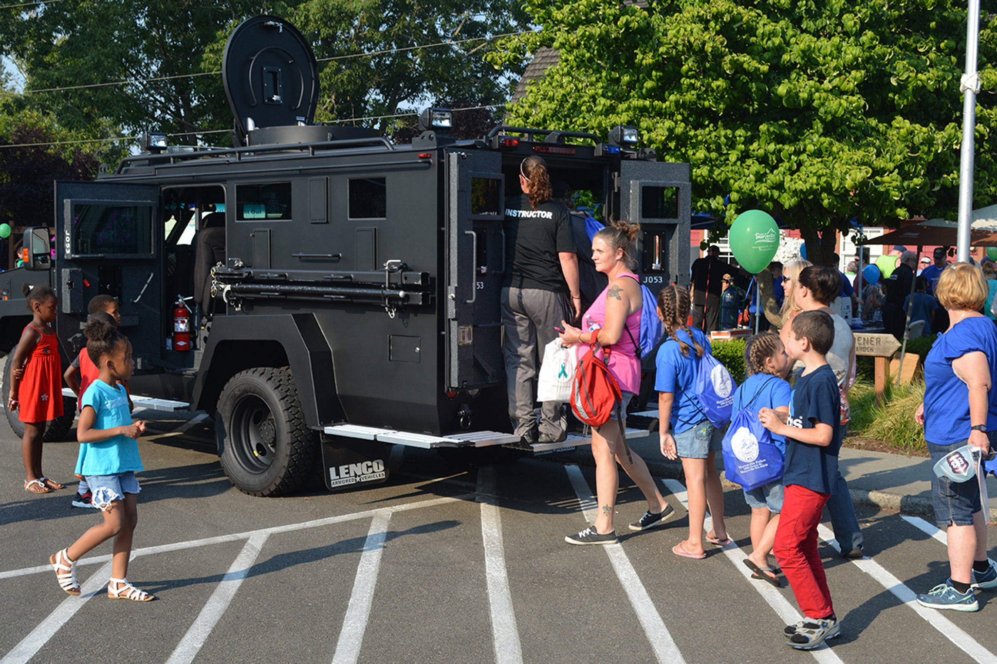 Costco sold safety items, such as fire alarms, and Providence Medical handed out stickers and coloring books about personal safety. Trenton Beesley, 13, who attends Marysville Middle School, was one of many young people who checked out the MPD’s new SWAT Bearcat vehicle. Mayor Jon Nehring said the turnout was at least double of what he saw last year.
