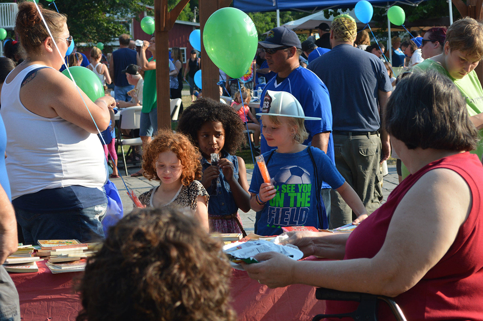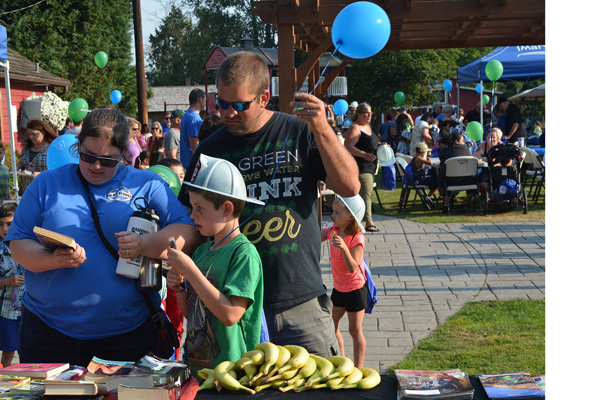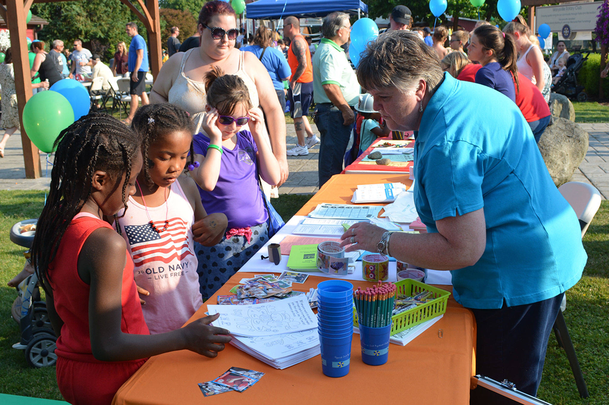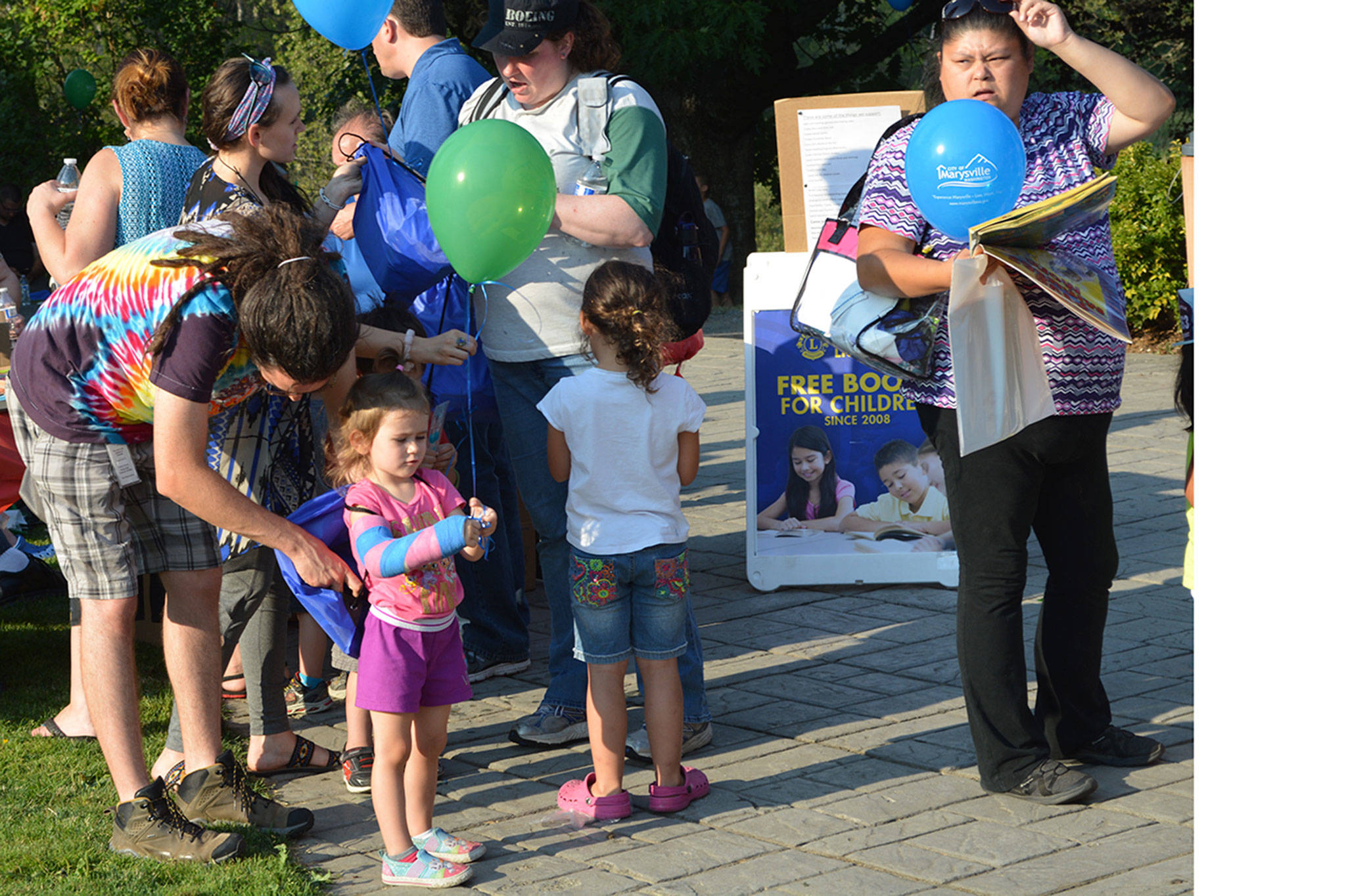 Also at the event, the Tulalip Lions Club gave out books, the city fire department gave away plastic helmets and the city handed out blue t-shirts that said, “Youth Are Our Future.”