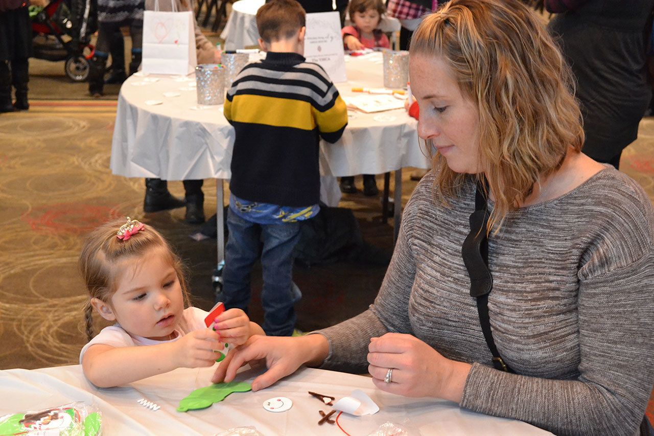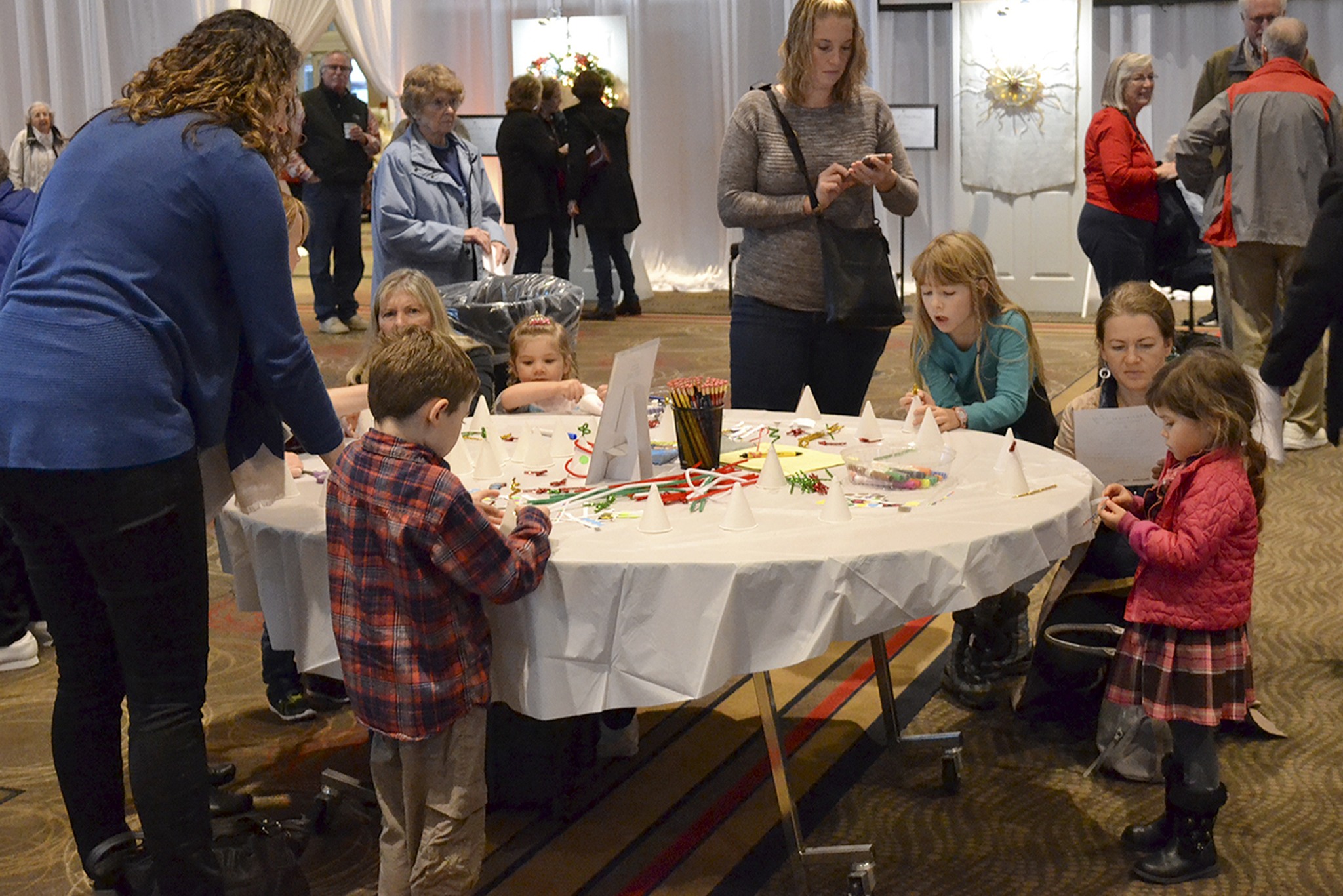 Kids gathered around tables where they could do Christmas crafts, while seniors came by van from various facilities around town.