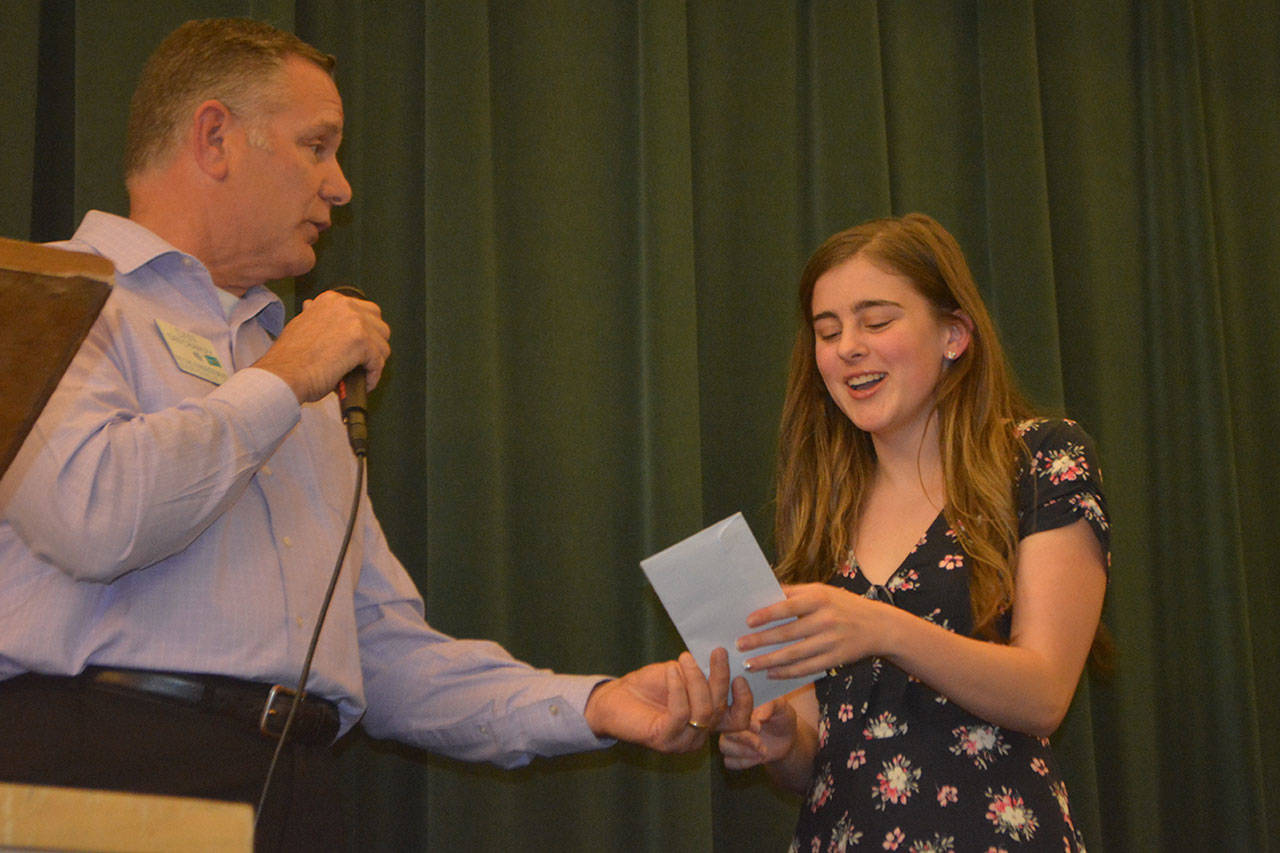 Morrison received a $20,000 scholarship from the Marysville Rotary Education Foundation Wednesday night. It was part of a record $178,500 Rotary gave out to 59 graduating seniors out of 88 applicants. Awards started at $1,000.