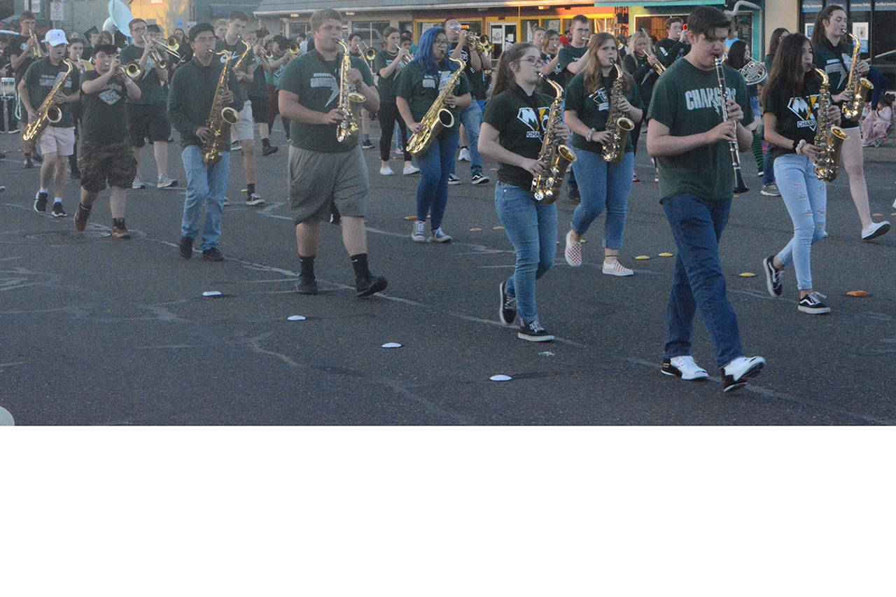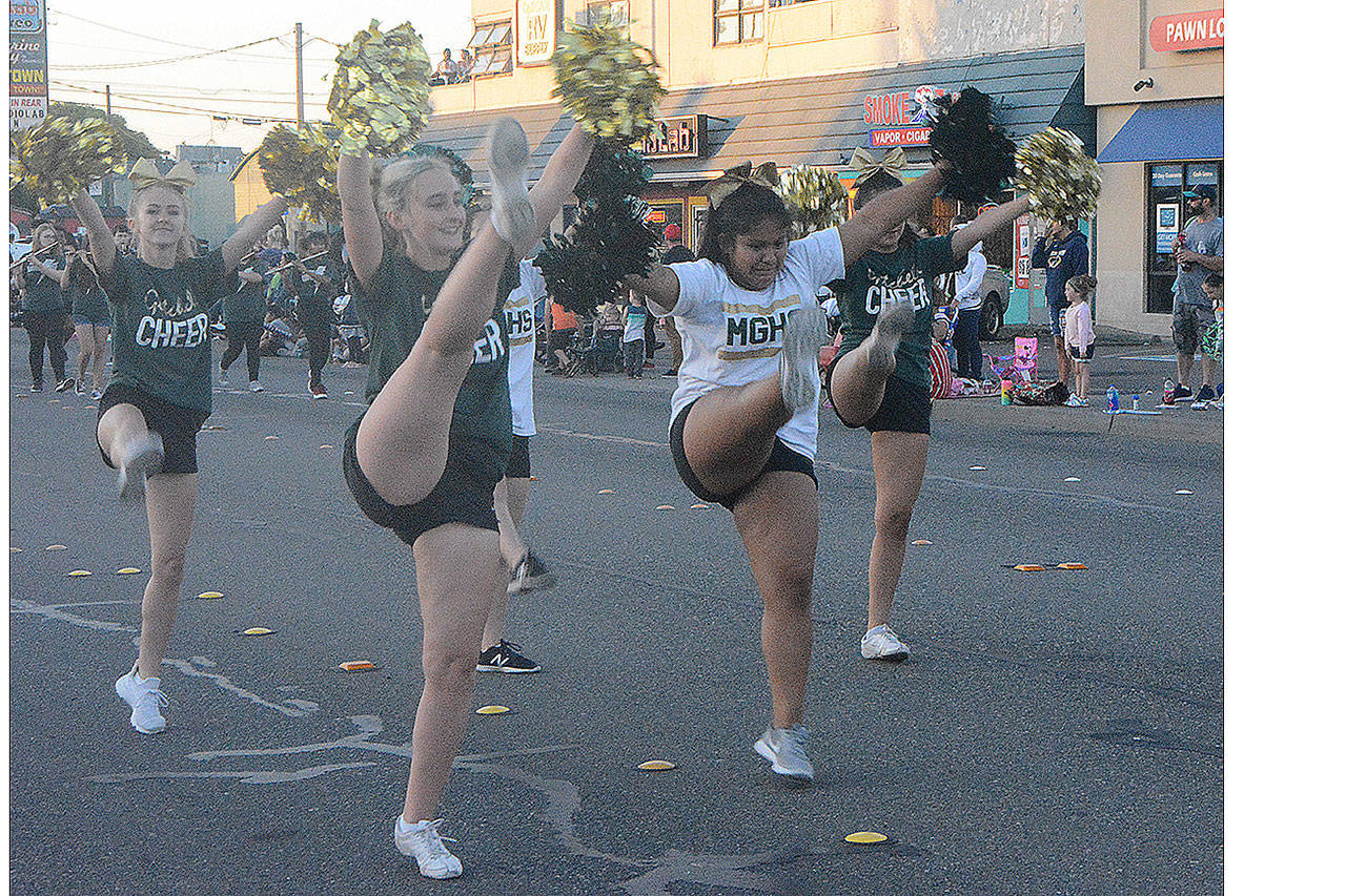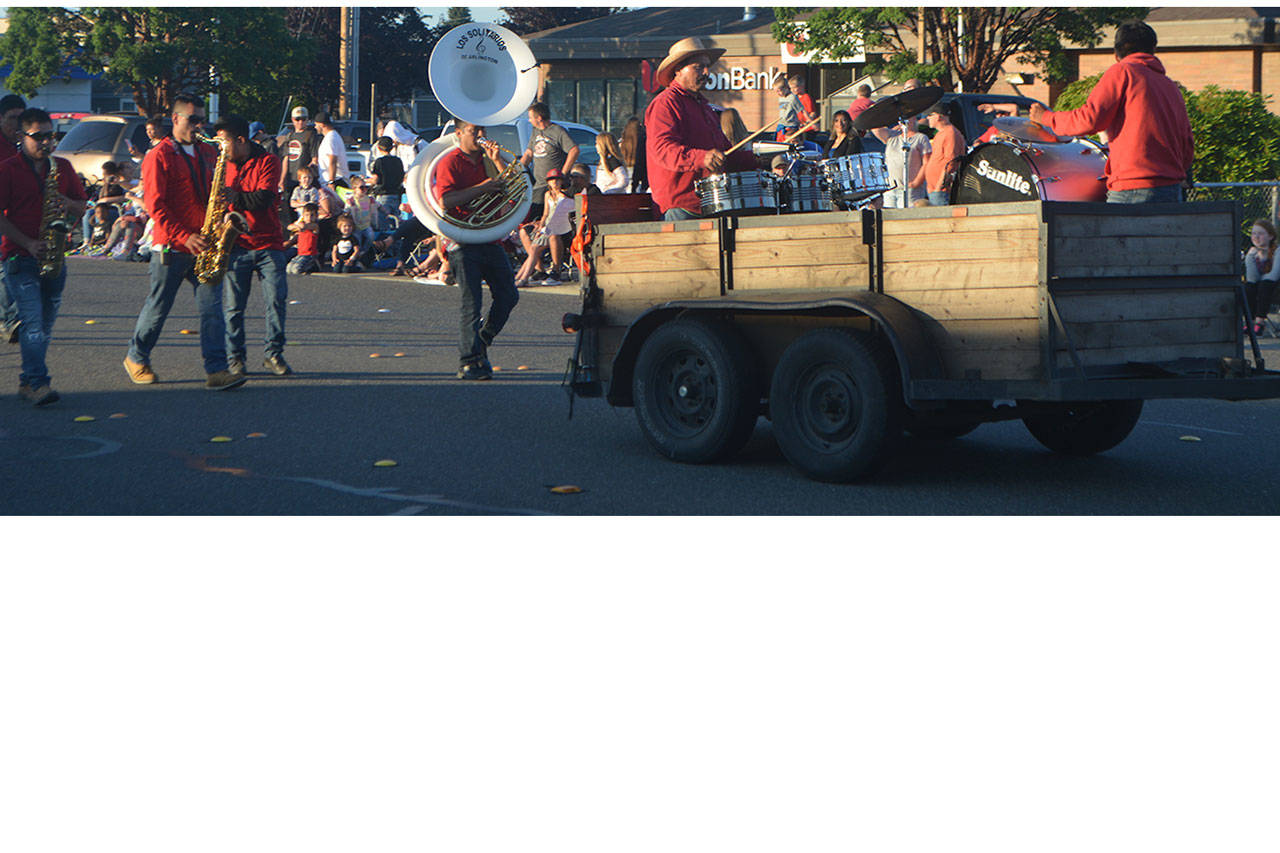 Bands from Marysville Getchell and Marysville-Pilchuck high schools marched in the parade. There were also dance and cheer squads from various locations, along with Rising Stars Gymnastics and two horse-riding groups.