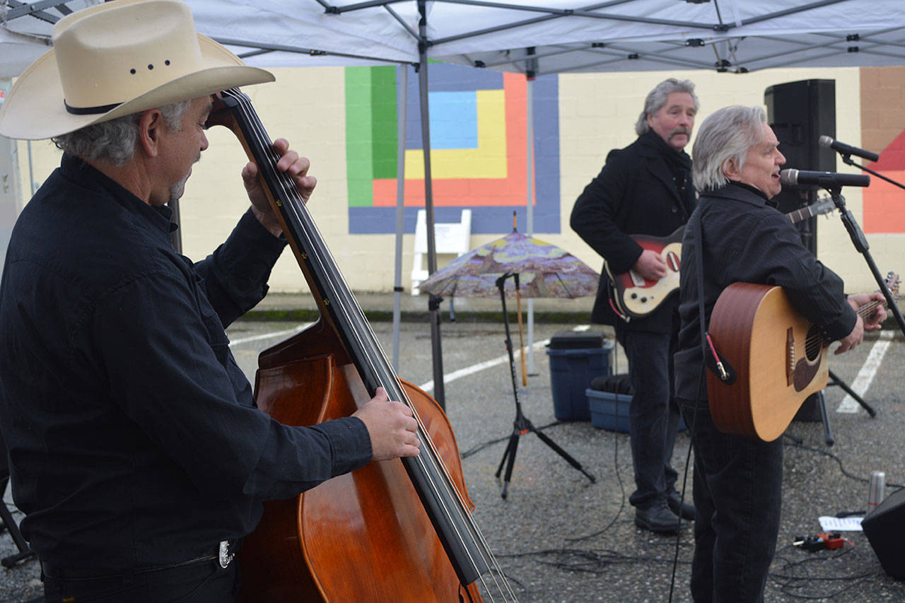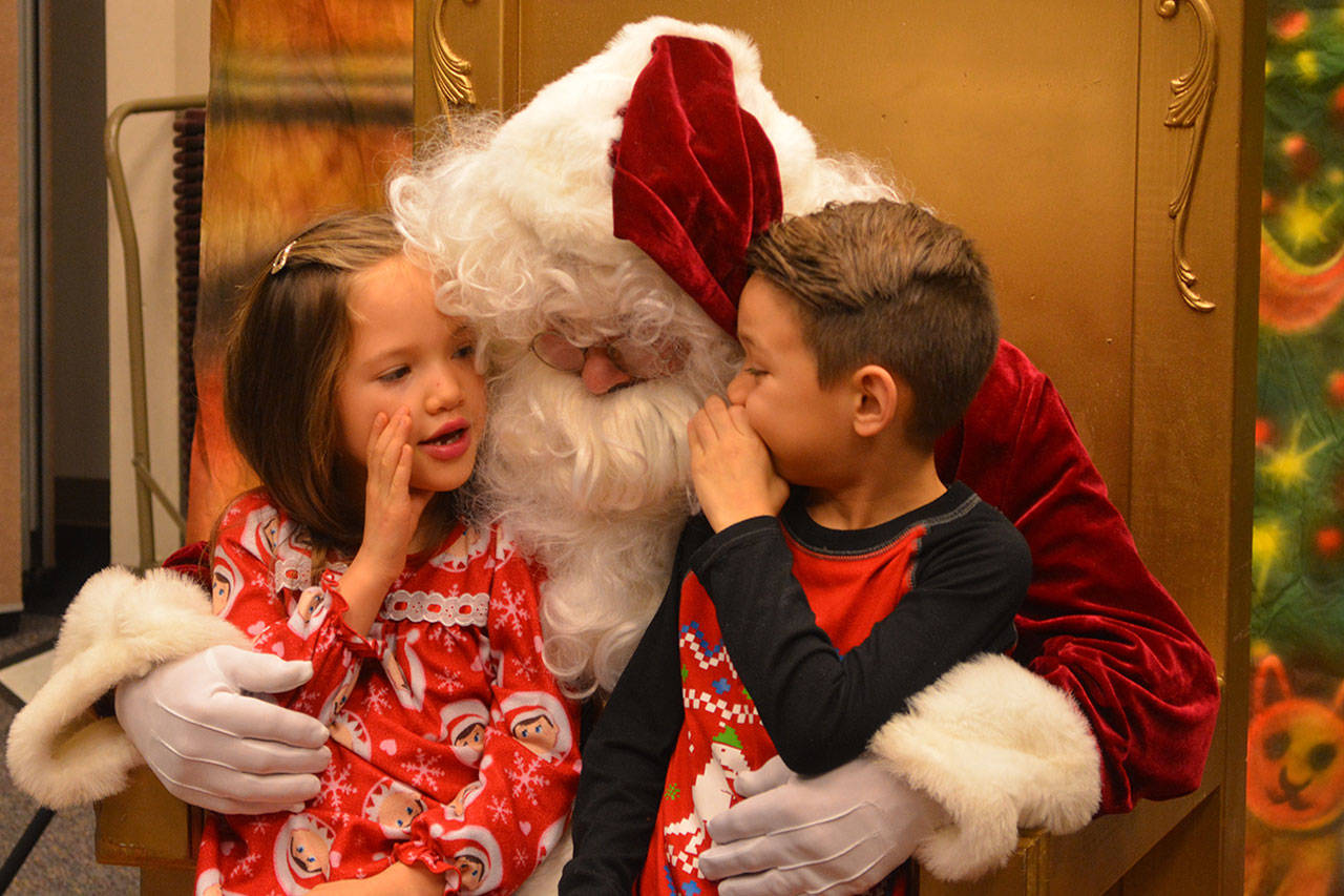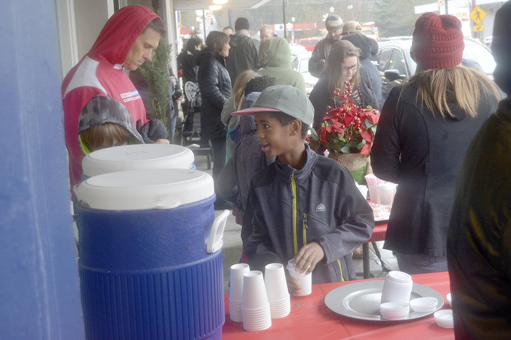 Before that, though, the holiday parade took place. Police, fire, tractors, marching groups and more performed. Onlookers mostly camped out under business overhangs or their own bumbershoots. Cascade Valley Senior Living won the Grand Prize for its Winter Wonderland entry.