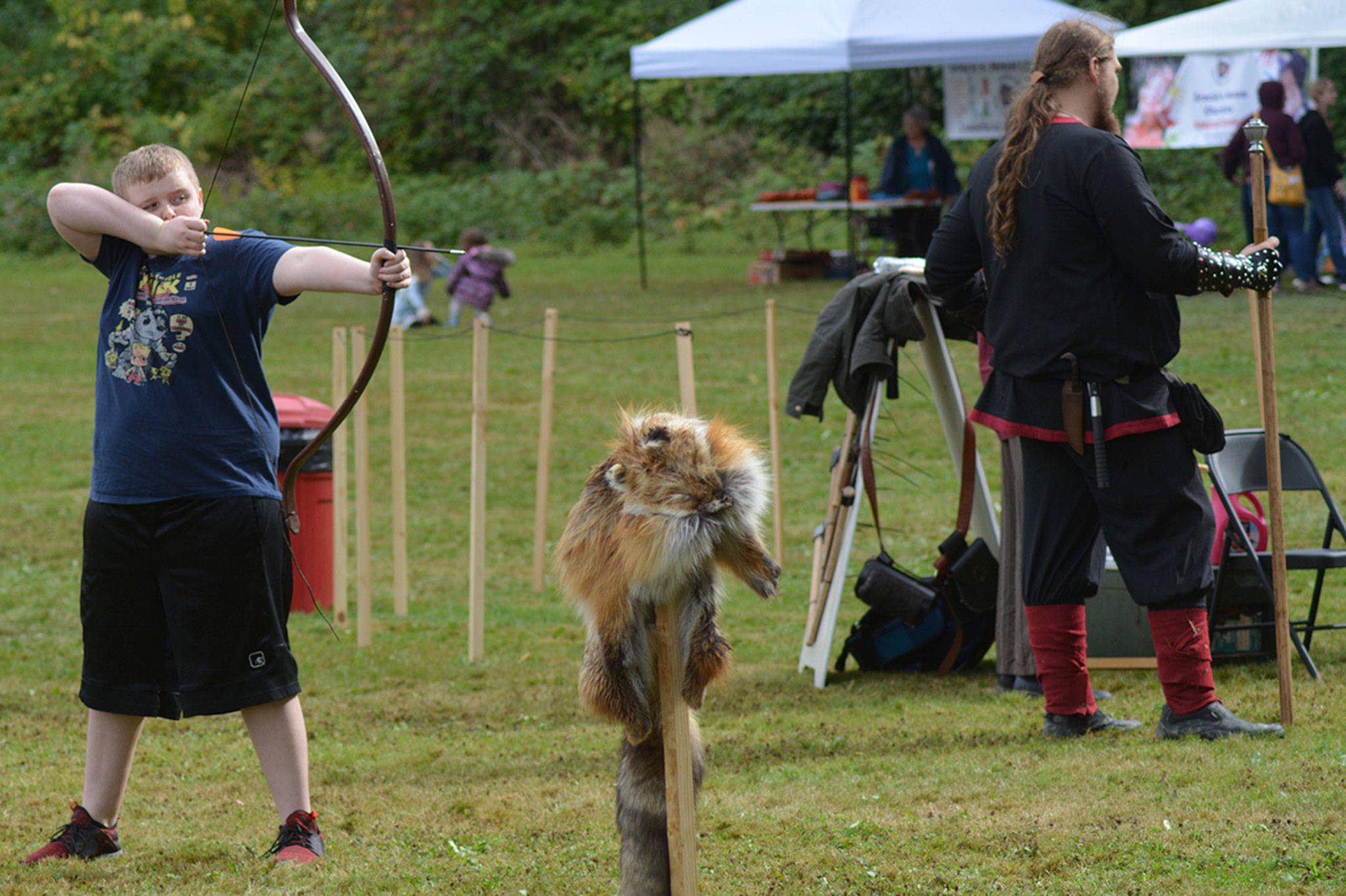 This year, there were 15 volunteers, 10 re-enactment groups and 40 vendors. Battles took place all over the large field. Participants like Elijah Joy, 9, of Arlington, tried hands-on activities, such as throwing spears and shooting a bow and arrow.