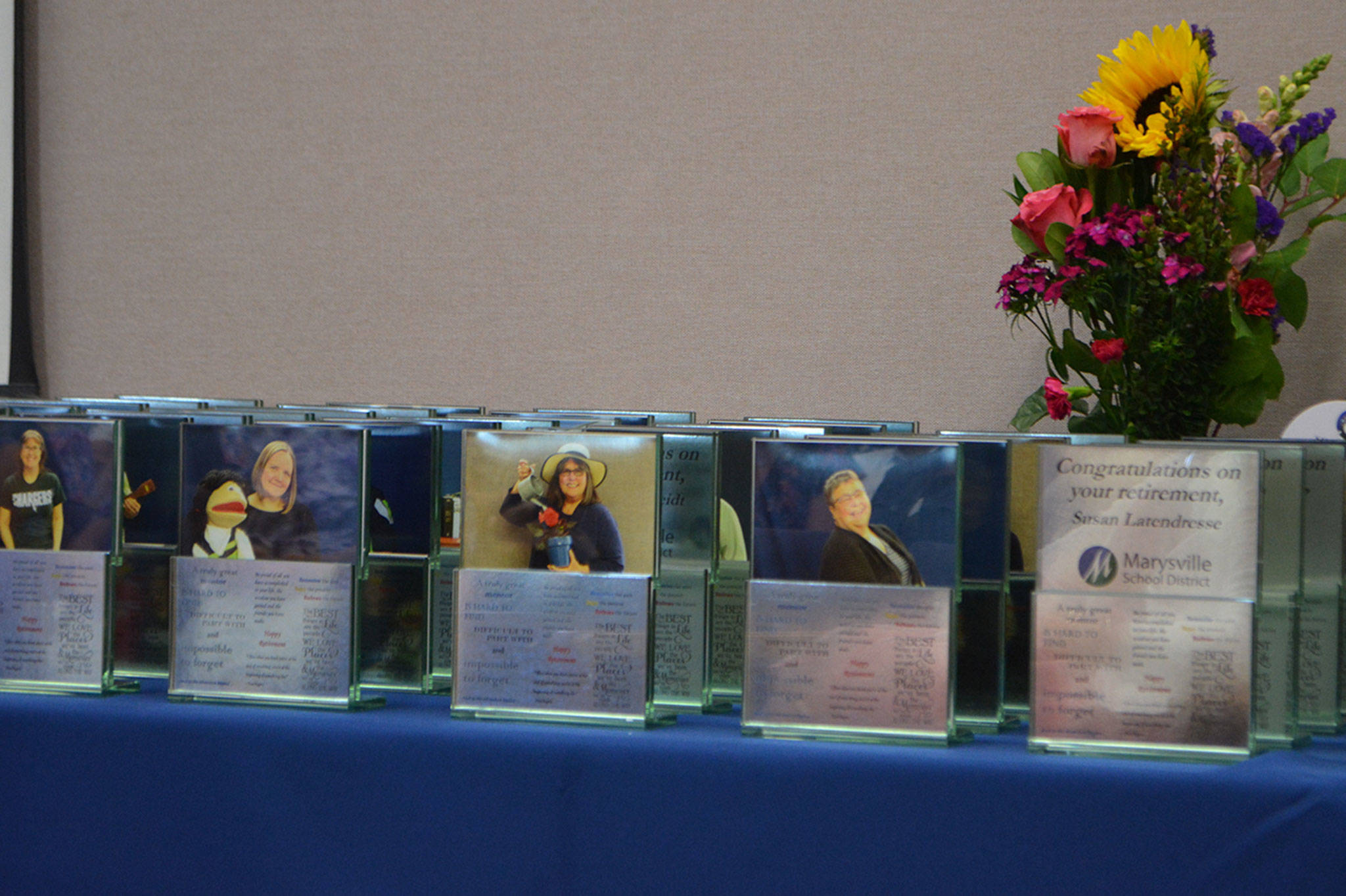 Donna Mohs was honored for being a paraeducator in the district for 28 years. When she retires she plans to travel to the eight states she hasn’t been to yet, and to come back to Marysville Middle School to volunteer.