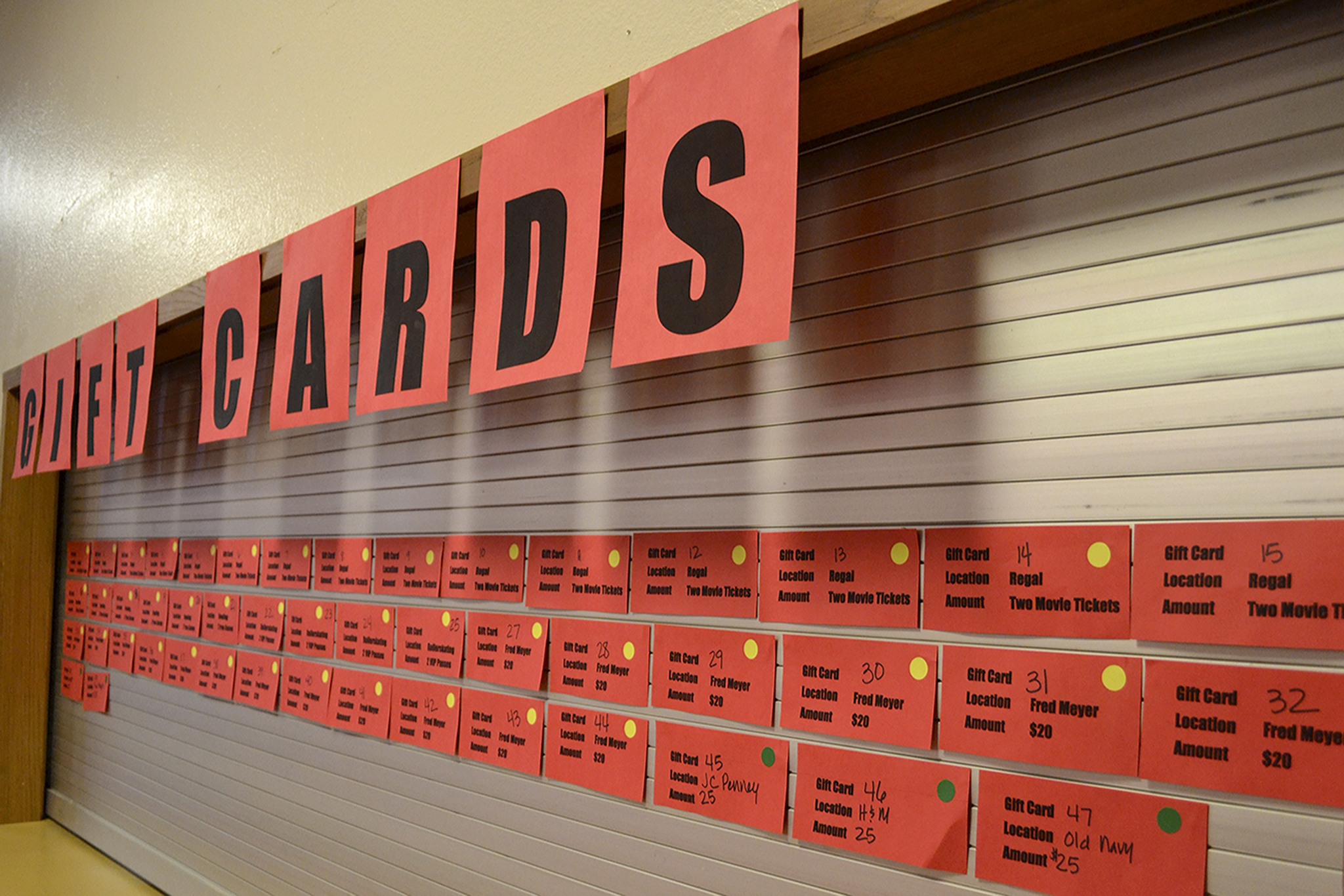 She explained that each child could receive two yellow gifts worth about $15 each or one green gift worth more than that. New this year were gift cards. There also were lots of stocking stuffers so each child could receive five.