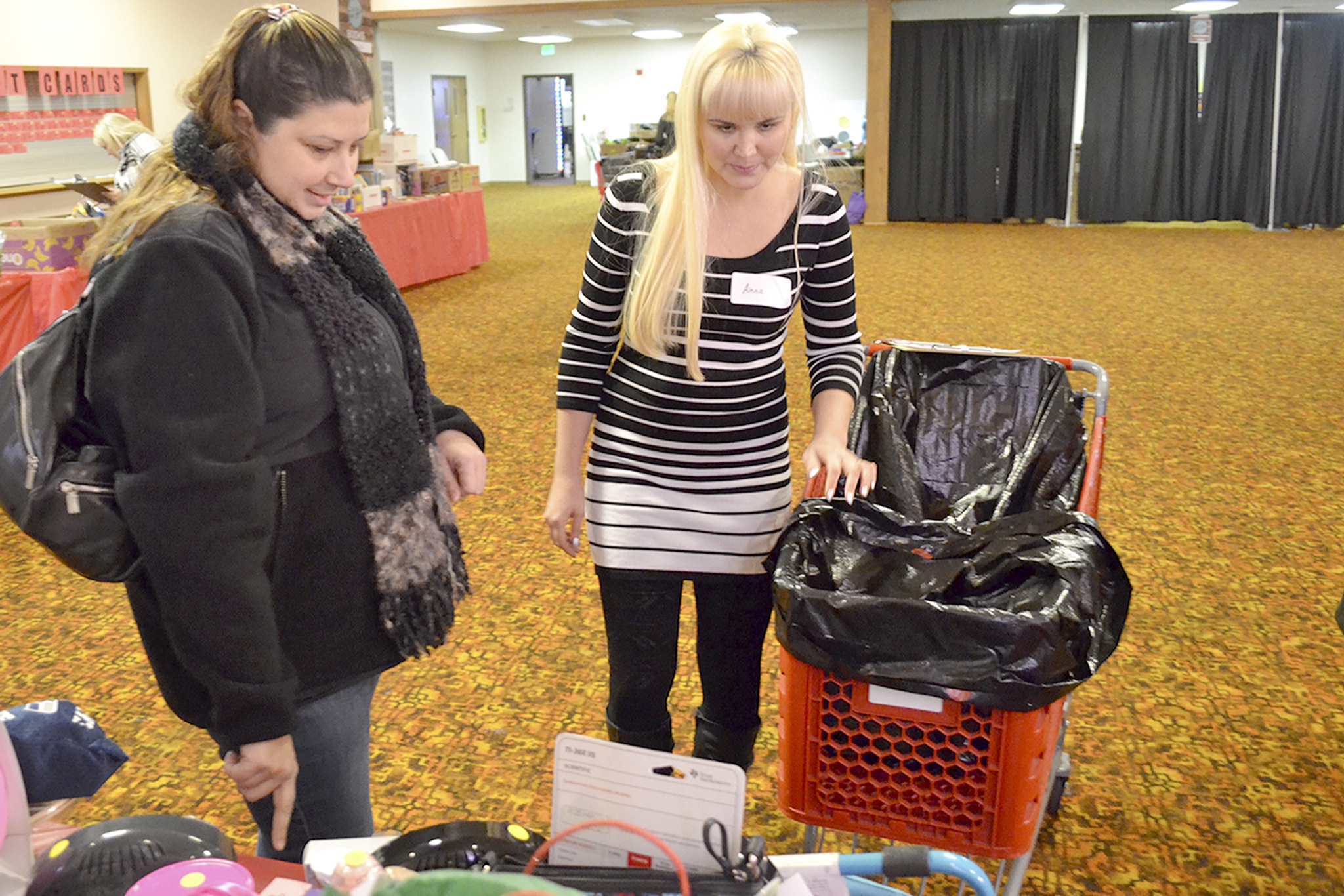 Patricia Duemmel, who has volunteered for 23 years at the event, shopped with participants to make sure they got what they wanted within the limitations of what was donated.