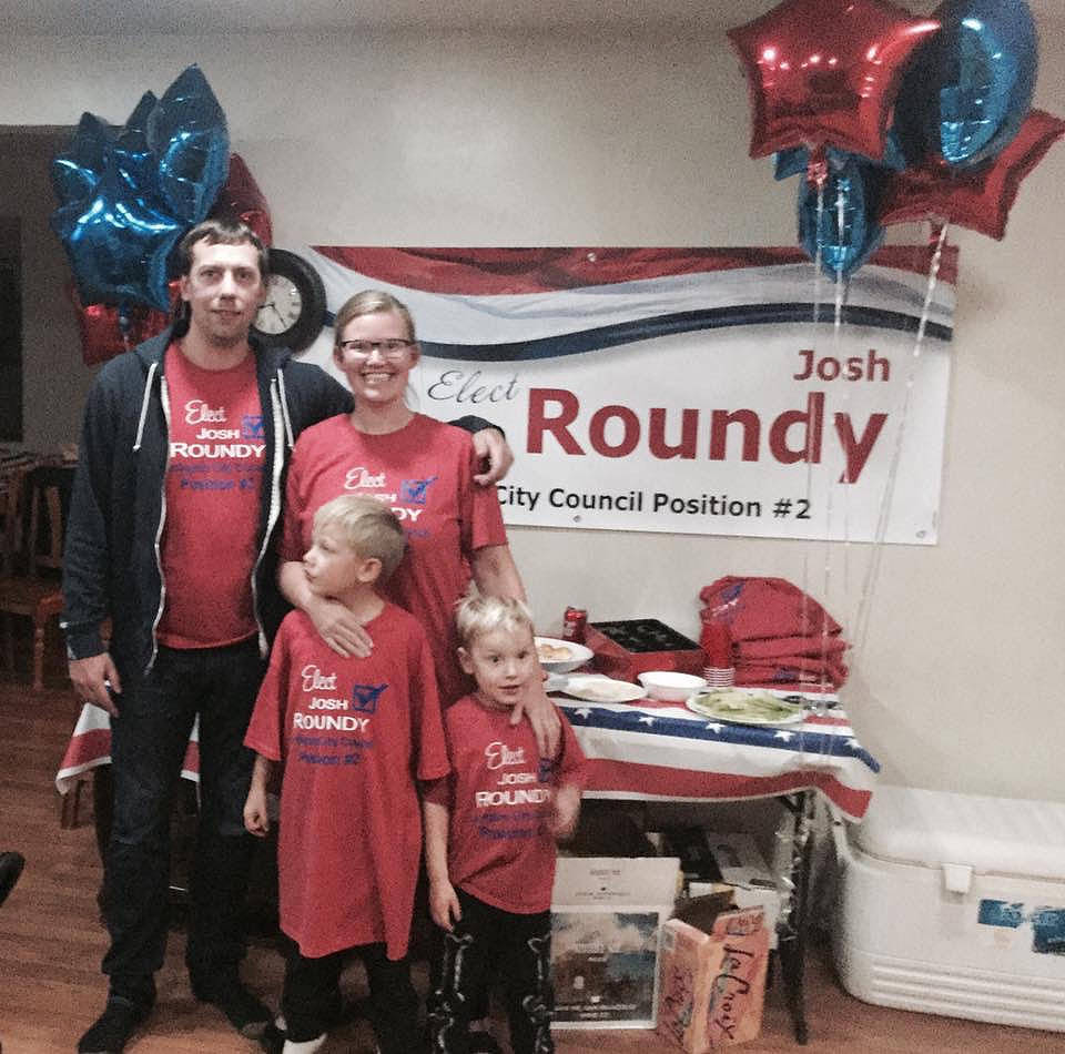 Challenger Joshua Roundy was defeating longtime incumbent Chris Raezer for the City Council 71 percent to 29 percent.