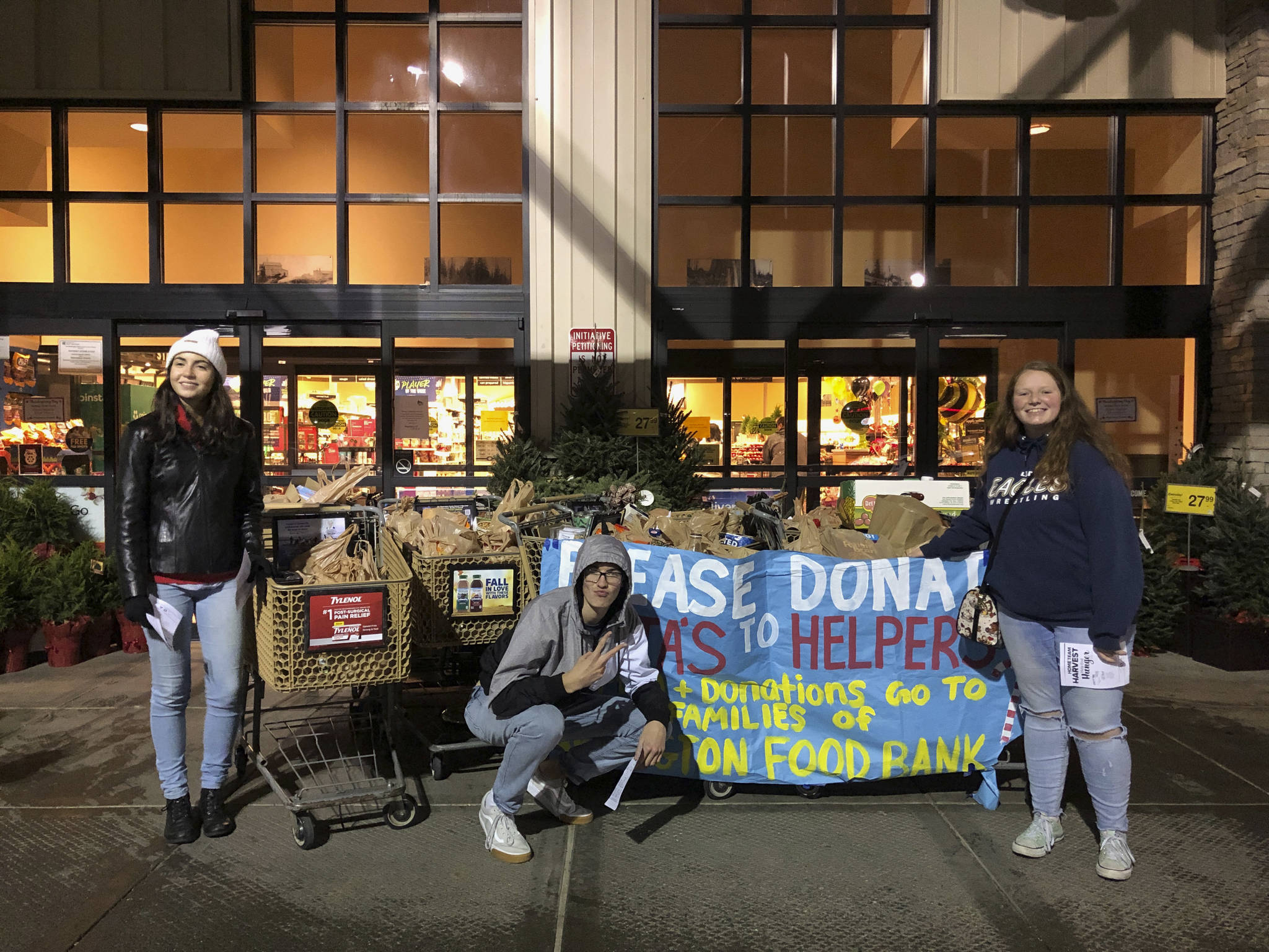 Each family received three to four weeks of food collected from Arlington Safeway and the Smokey Point Walmart. The school’s marketing and business students collect food and donations at the doors, and greet people with a shopping list of needed non-perishable food and grocery items.