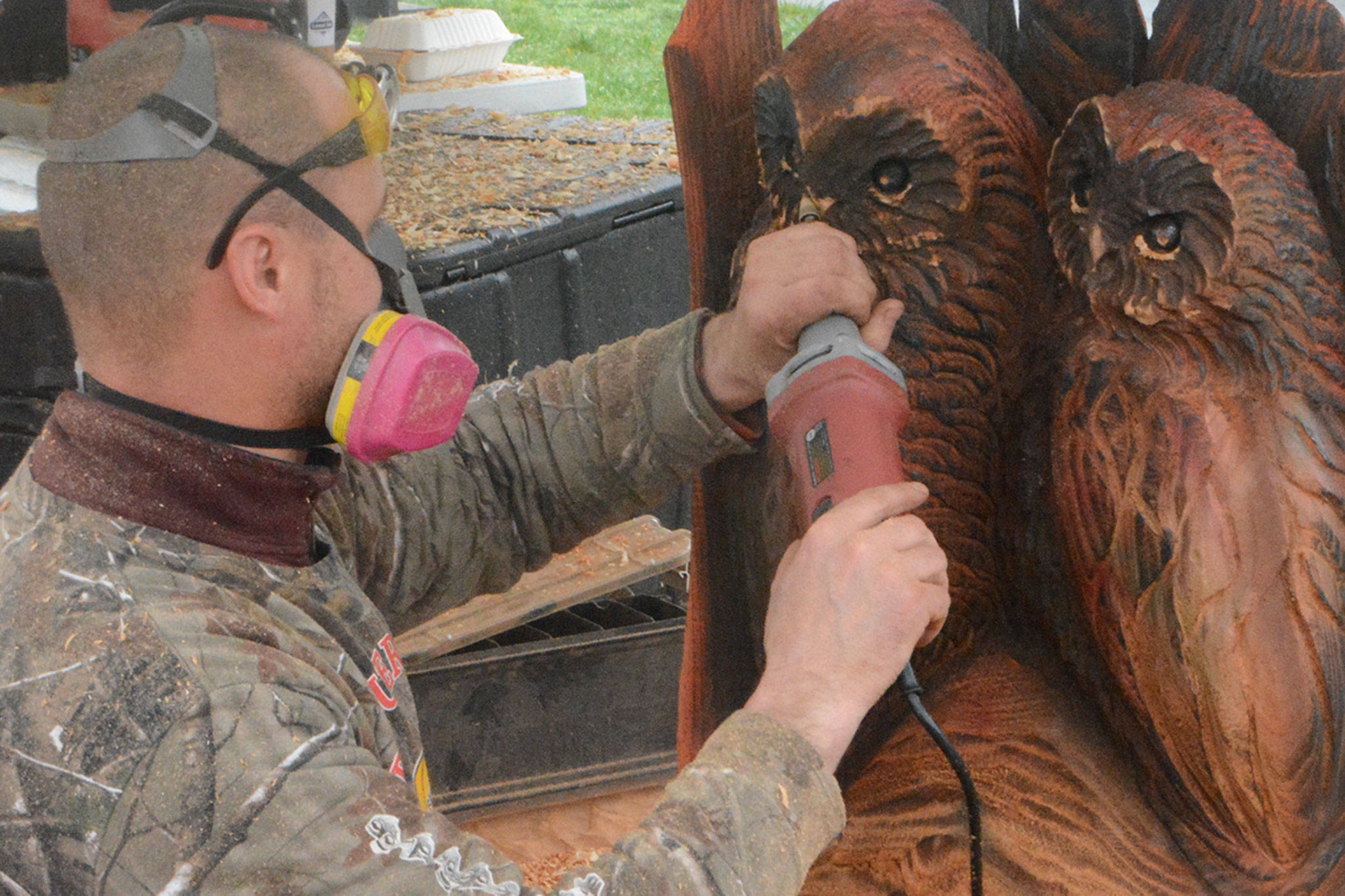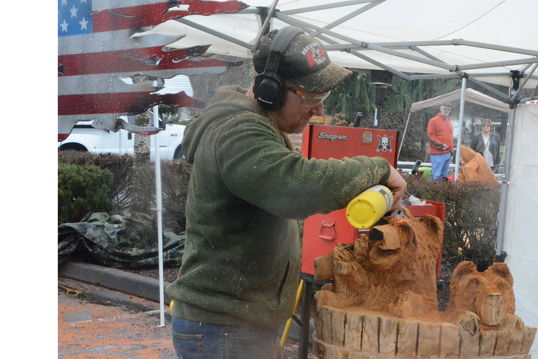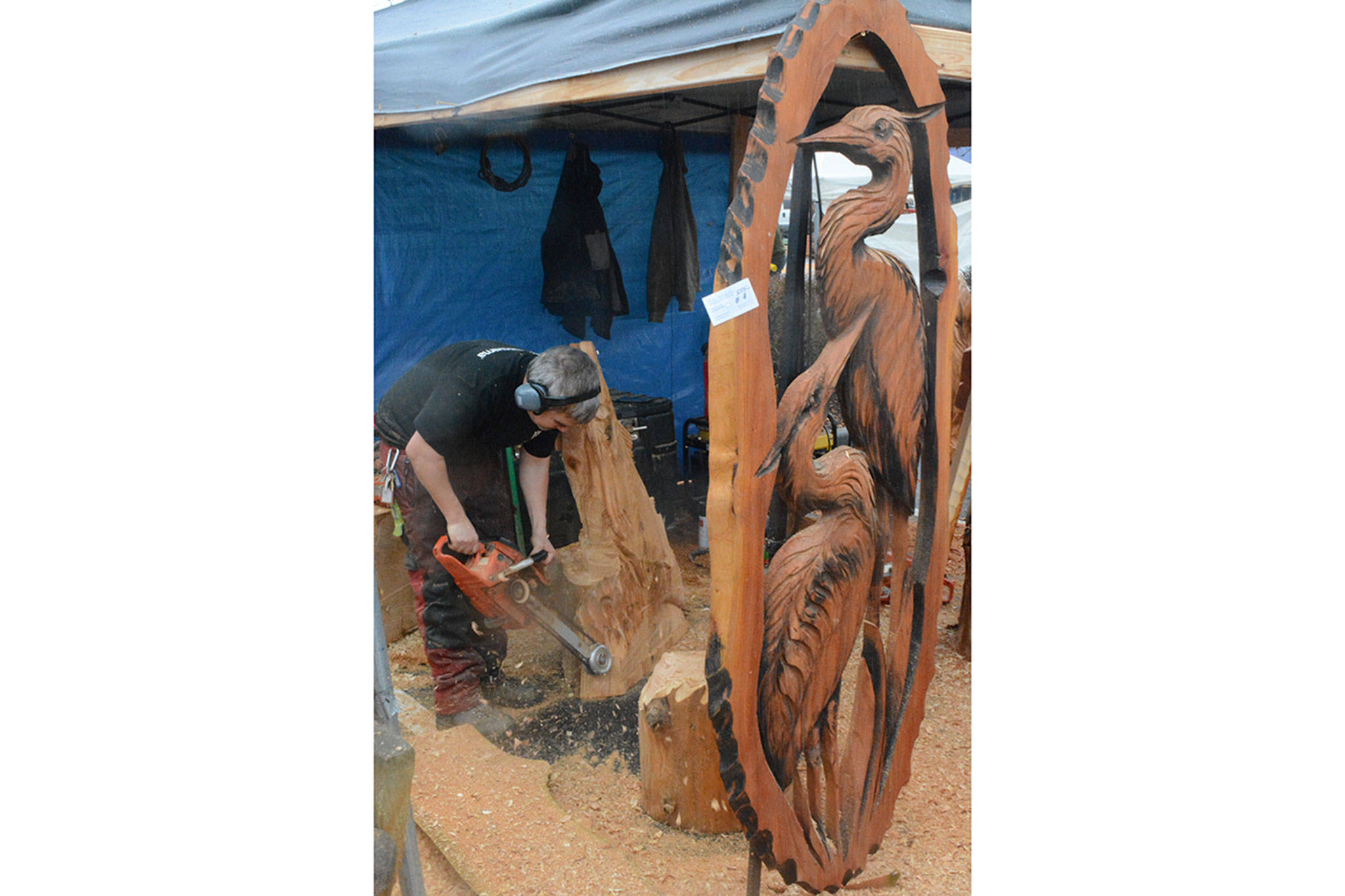 The largest – and noisiest – outdoor attraction featured some of the Northwest’s award-winning chainsaw carvers busy at their craft for the Extreme Chainsaw Sculpture Event in the Legion Park parking lot.