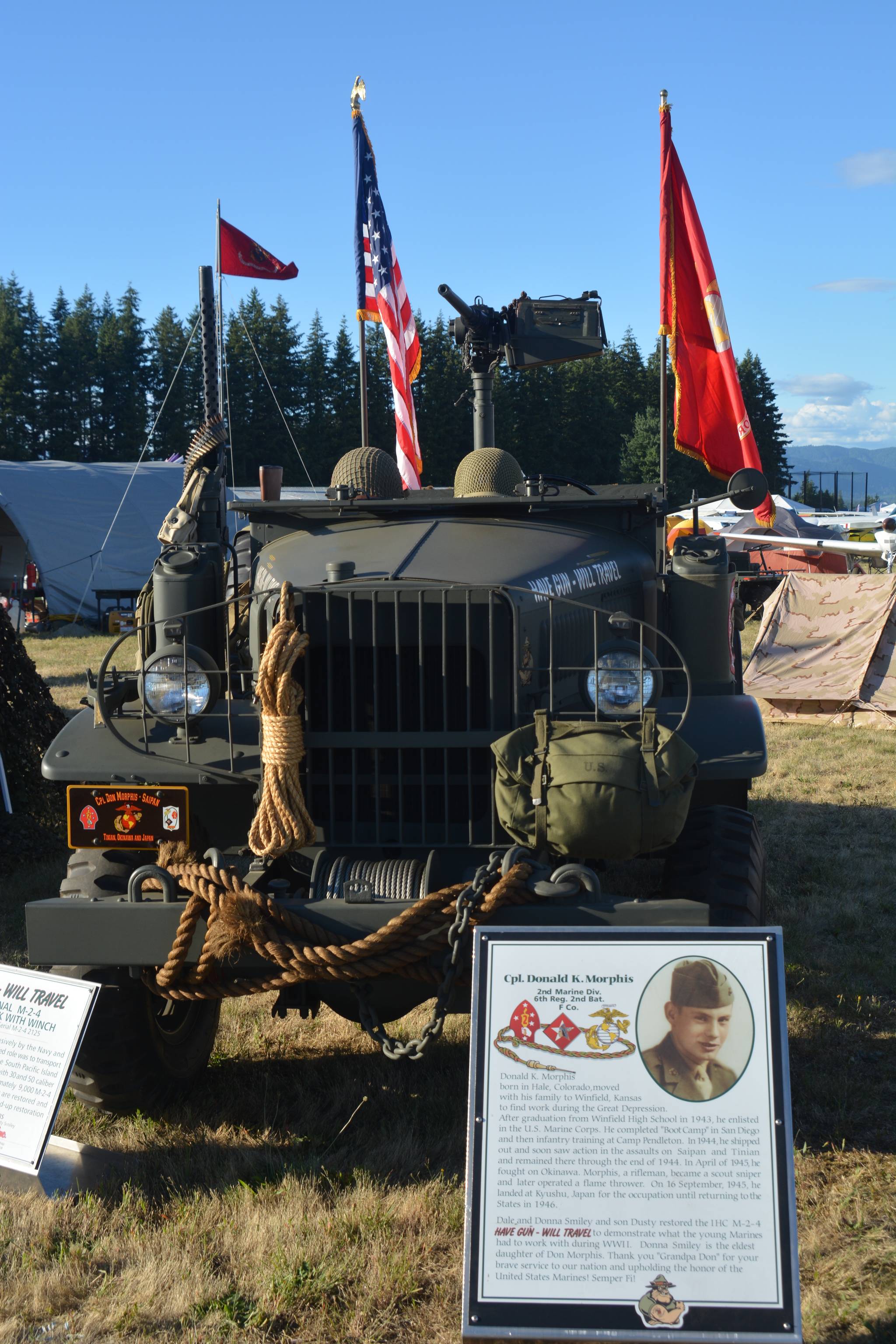 Camp Adams opens at noon on Friday. The mainstay attraction at the Fly-In hosted by the North Pacific Marine Corps is the largest public gathering of former military vehicles, aircraft, weapons and equipment displays in the West, used during WWII, Korea, Vietnam and other conflicts.