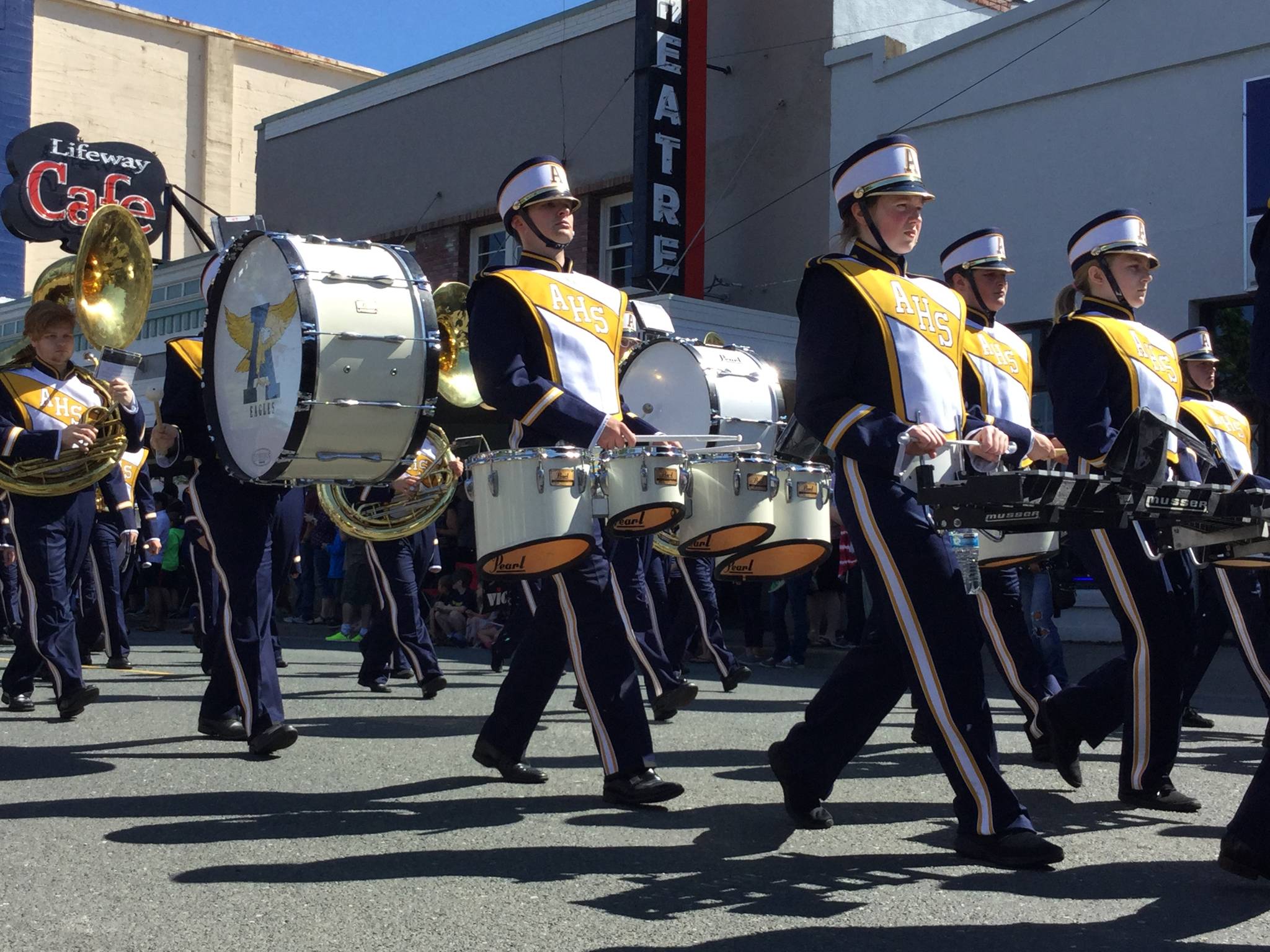 Whether on foot or riding in a restored shiny-red flatbed truck, veterans in the 20-minute parade had plenty of company. Other entries included first responders, American Legion Riders, the Arlington High School marching band in their spiffy new uniforms, Arlington High School Air Force Jr. ROTC, Boy Scouts, Girl Scouts, Cub Scouts and others.