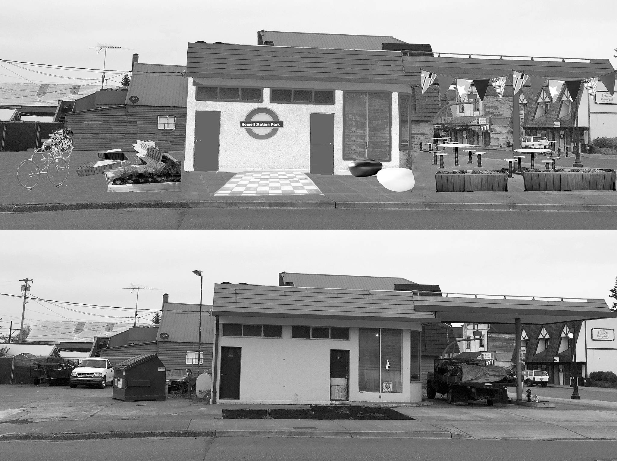 The remodel of the city-owned “old Shell station” at 4th Street and Olympic Avenue is being funded through a $275,000 state Commerce Department grant, and an additional $45,000 grant was secured for pocket park development.