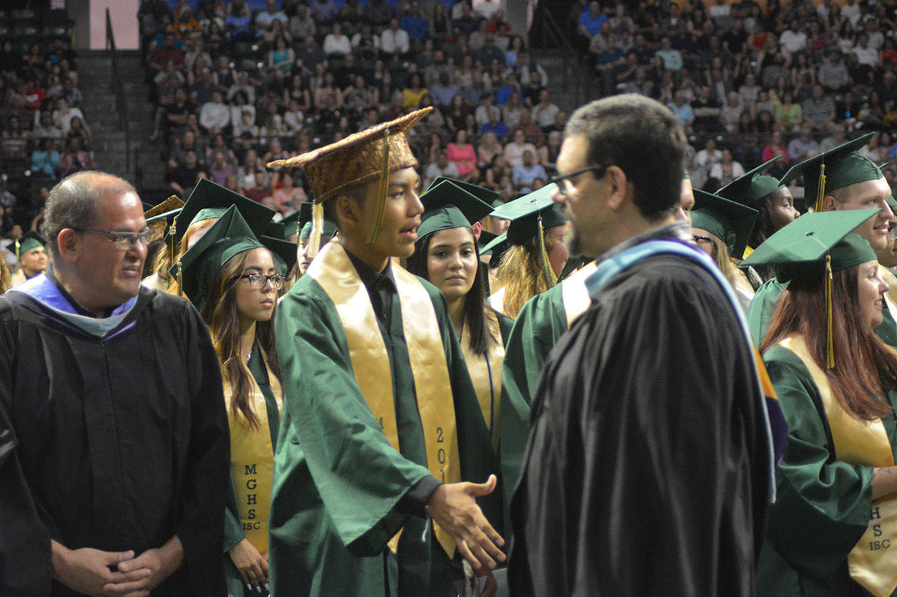 Valedictorian David Samaniego, who received an impressive 12 awards and scholarships, said with all of the changes that happened at MG the past four years, this class had to learn to embrace change, and that helped them grow as people and form new bonds.