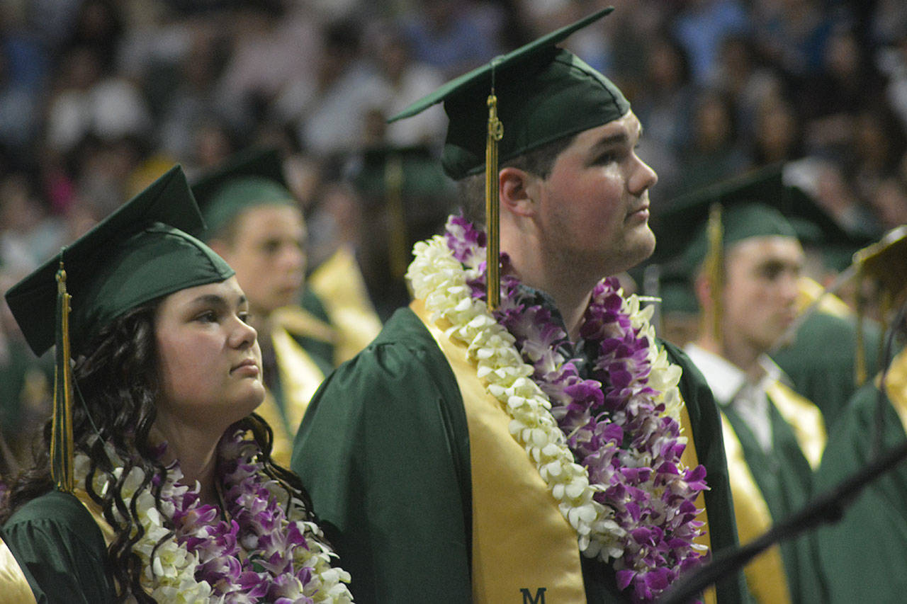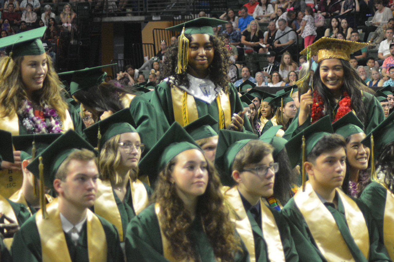 But enough about the past, he said. This class had some of the best sports teams in the school’s nine-year history. Looking to the future, 96 percent of the 360 grads are going to college or a trade school, joining the military or going to work. Along with their diploma, 35 are getting Associated in Arts two-year college degrees, and they received almost $1 million in scholarships.