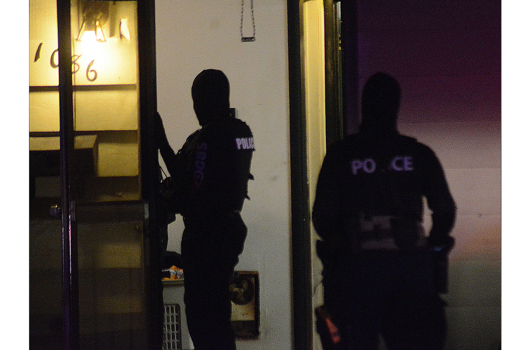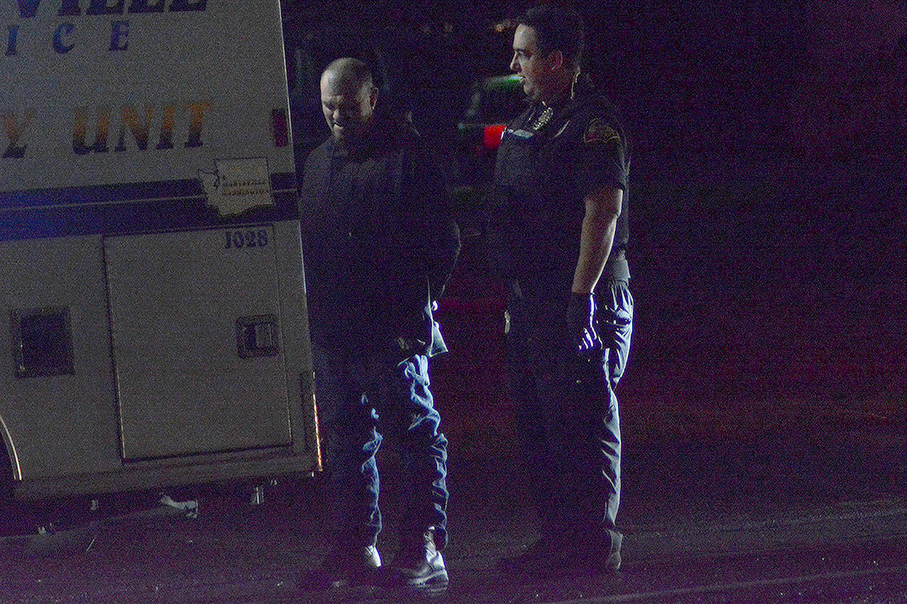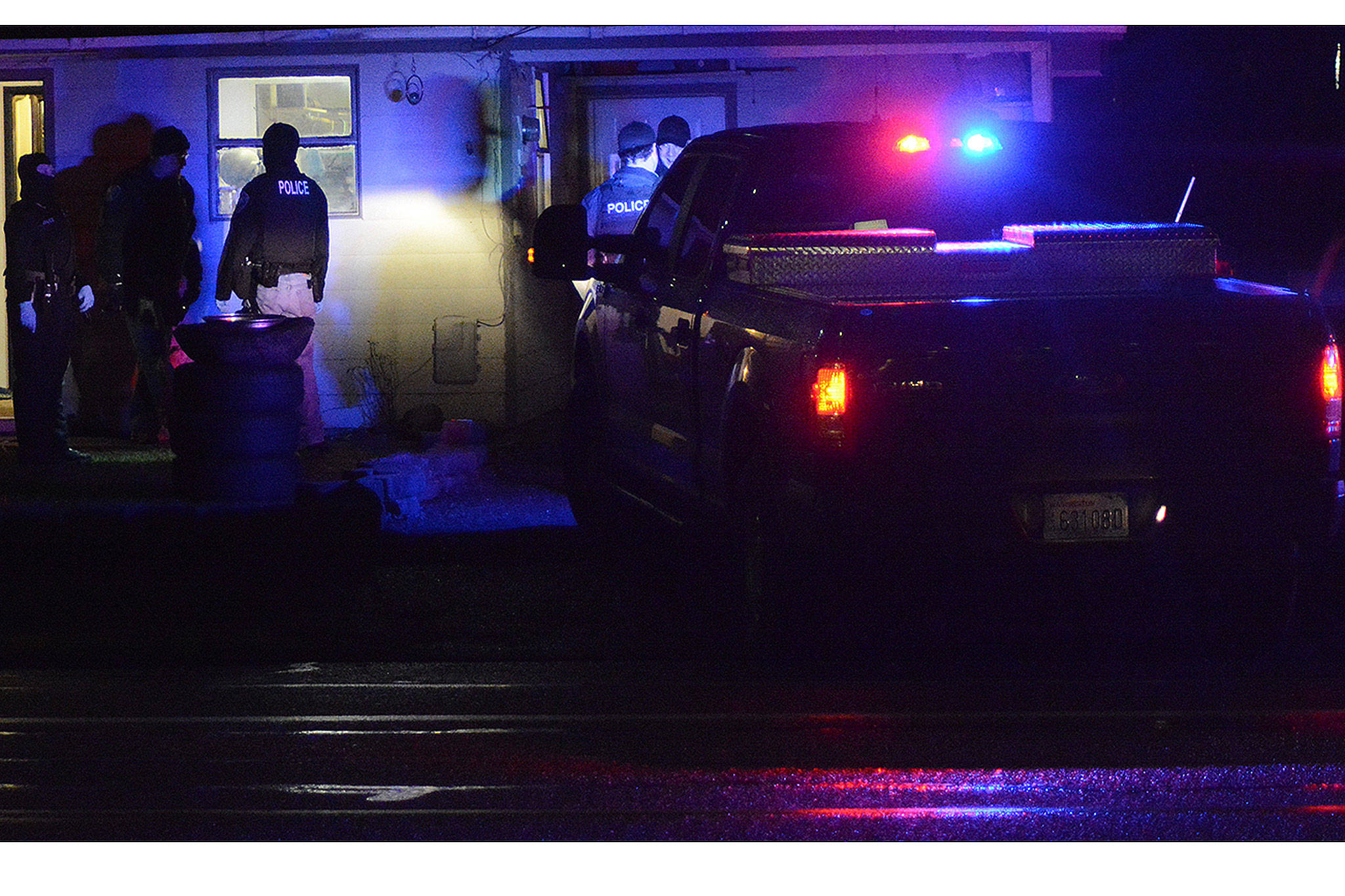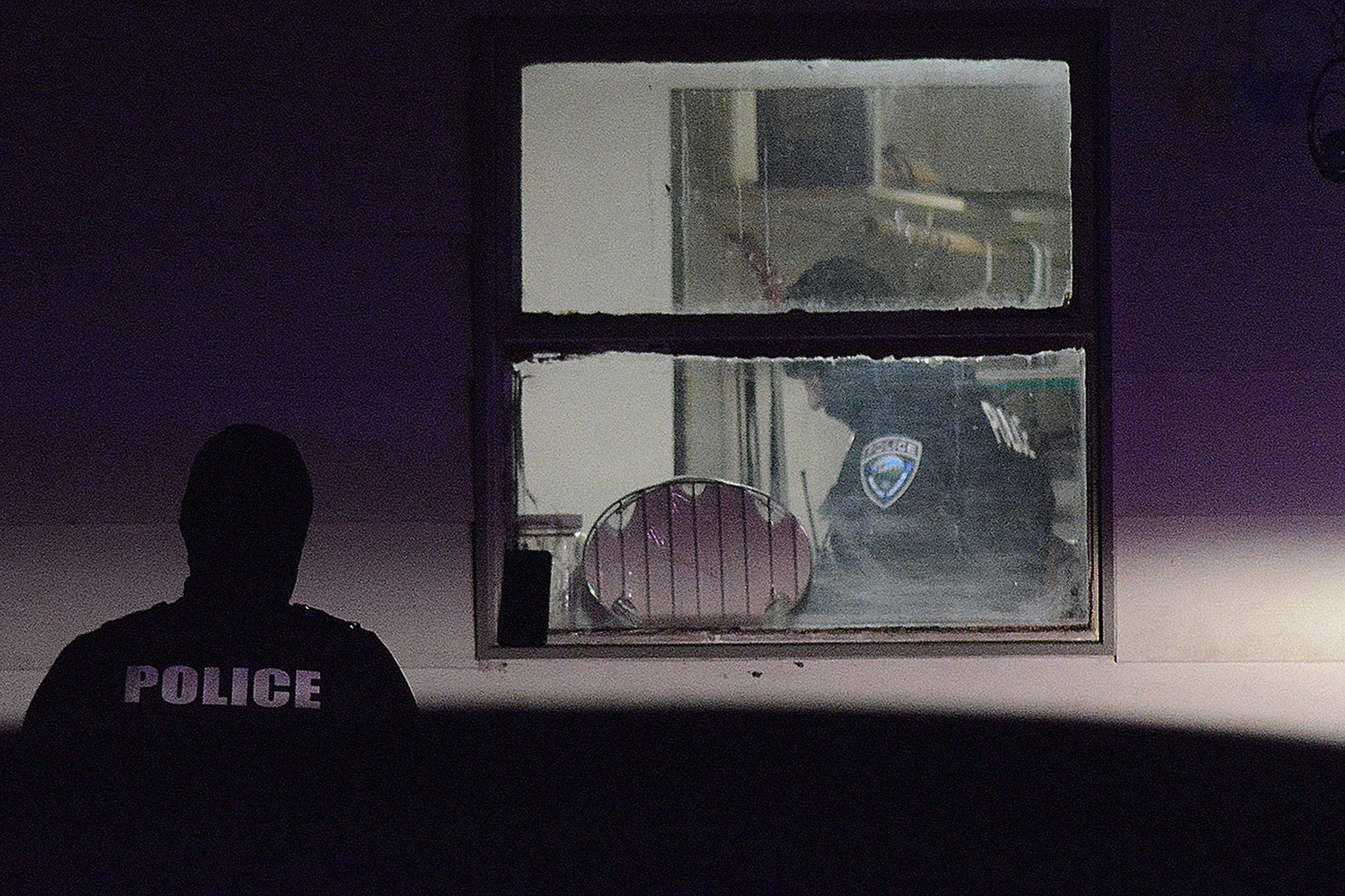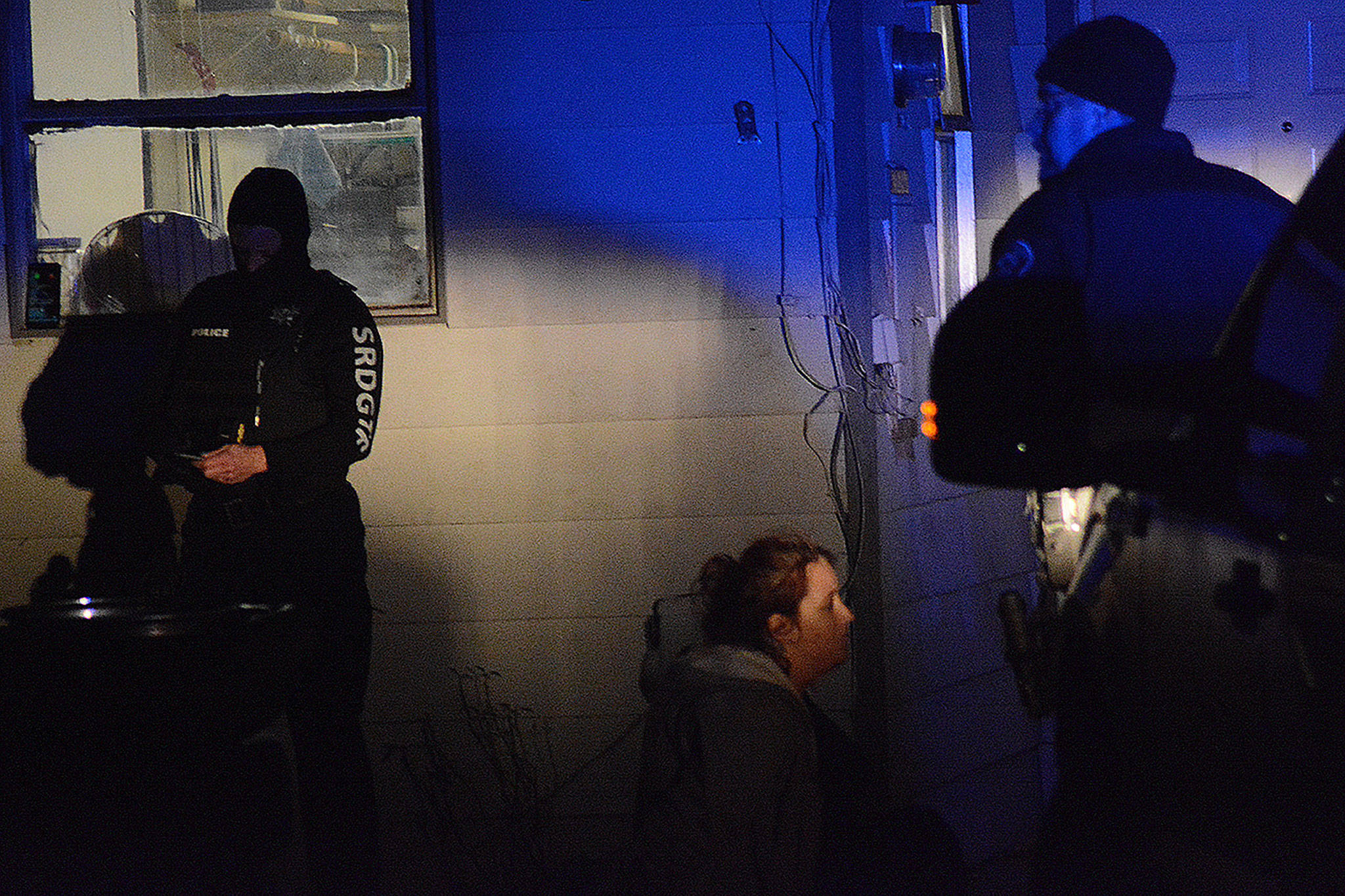 One officer led a handcuffed man southbound down the streets to a patrol vehicle.A handcuffed woman could be seen on her knees surrounded by police.A K-9 unit also was brought in.