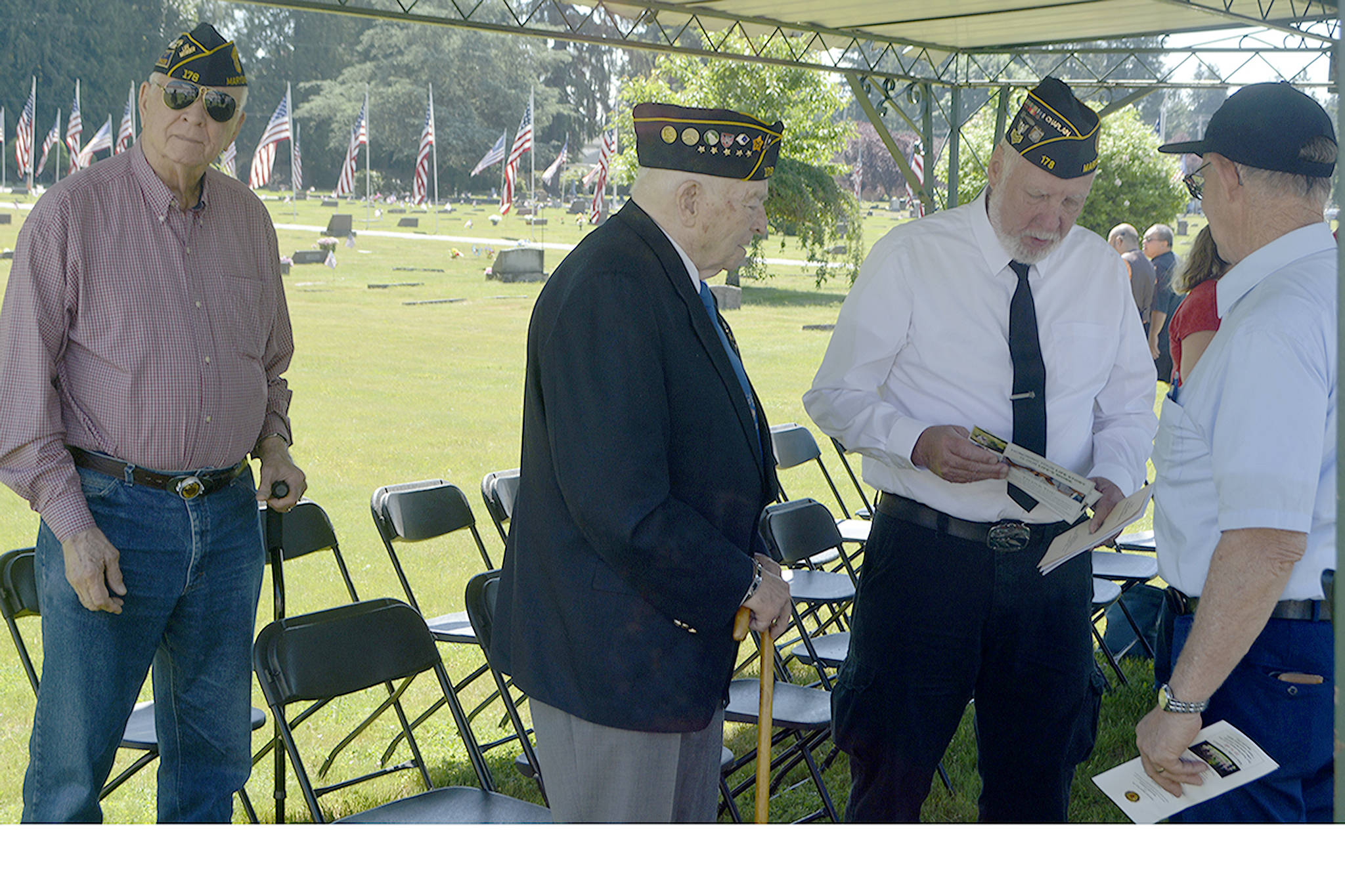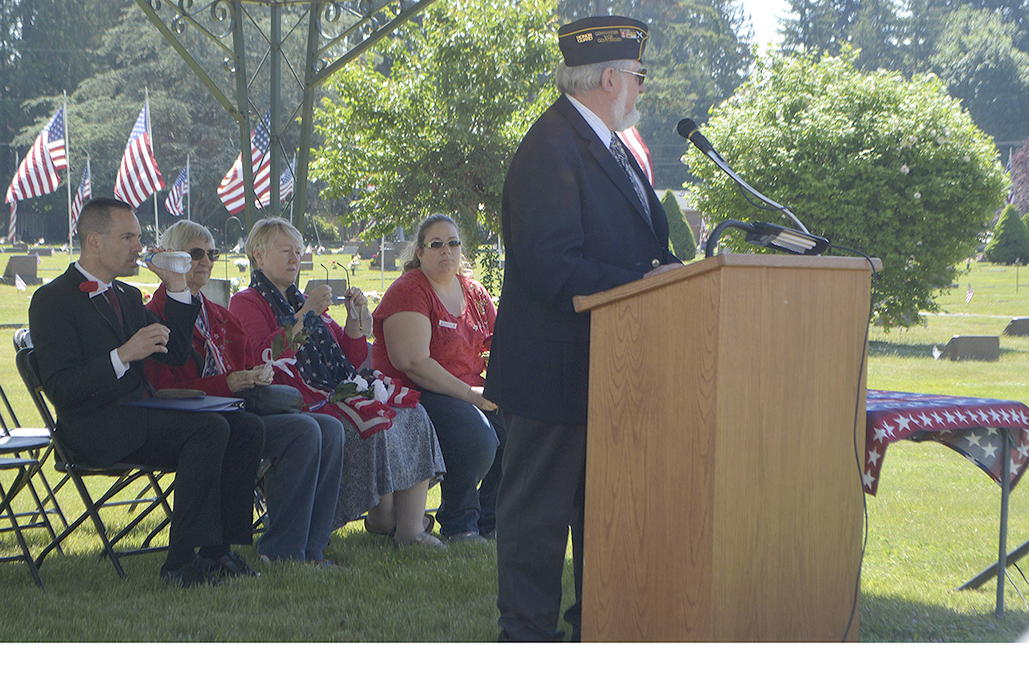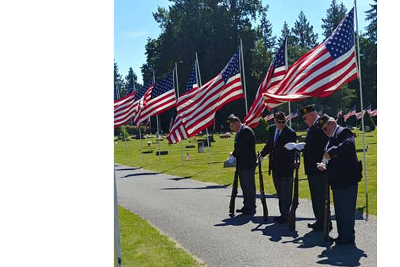The event concluded with an emotional rendition of Lee Greenwood’s “God Bless the USA” by Alyssa Bojador of the Marysville high school Navy Junior ROTC, a rifle salute from honor guard Eugene Brown, Ron Collins, Dan Pradera and Jim Sewell, taps, a closing prayer from post Chaplain Robert French, and the retiring of the colors.