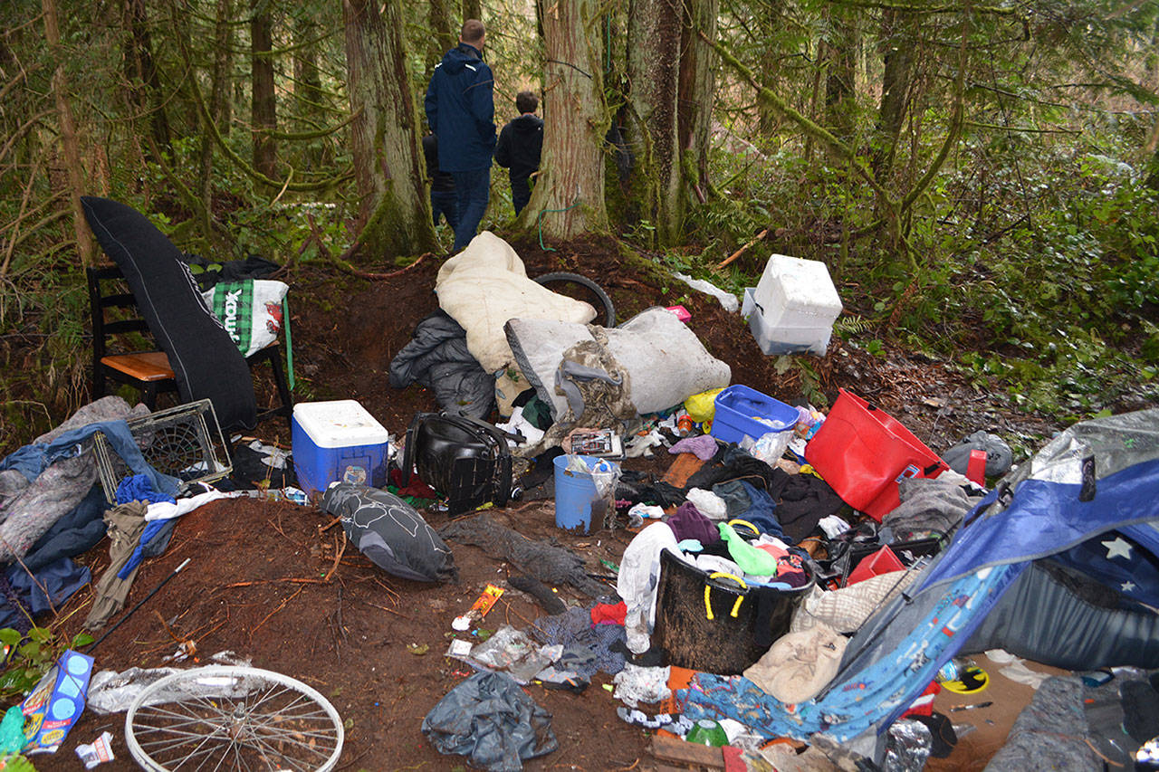 The tour of the homeless encampment came after a meeting of city and county officials nearby at The Lodge housing development. The meeting was to announce the start of a new Office of Neighborhoods in North County. Marysville Mayor Jon Nehring and Police Chief Rick Smith continued to champion some of their views on homelessness and the drug epidemic.