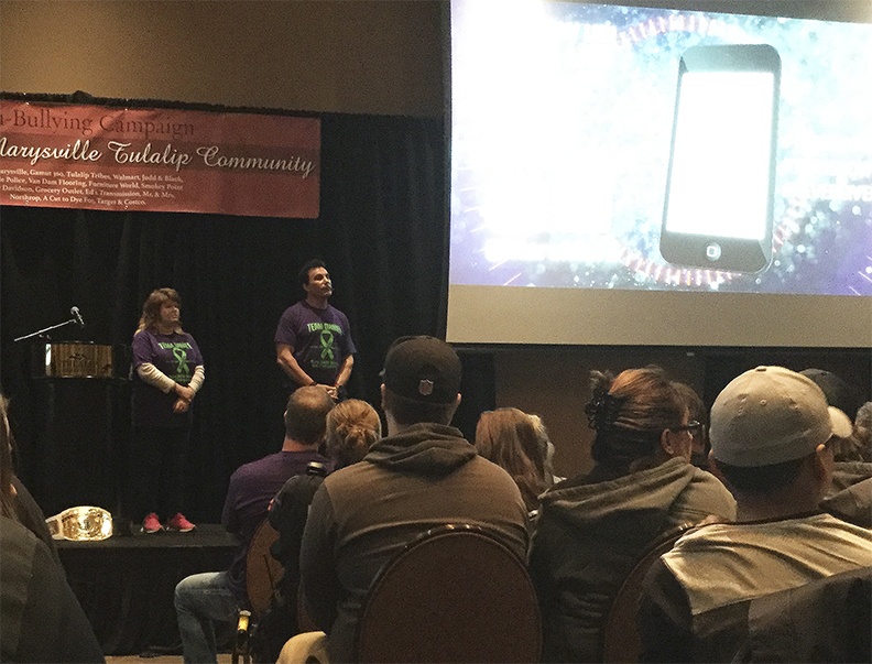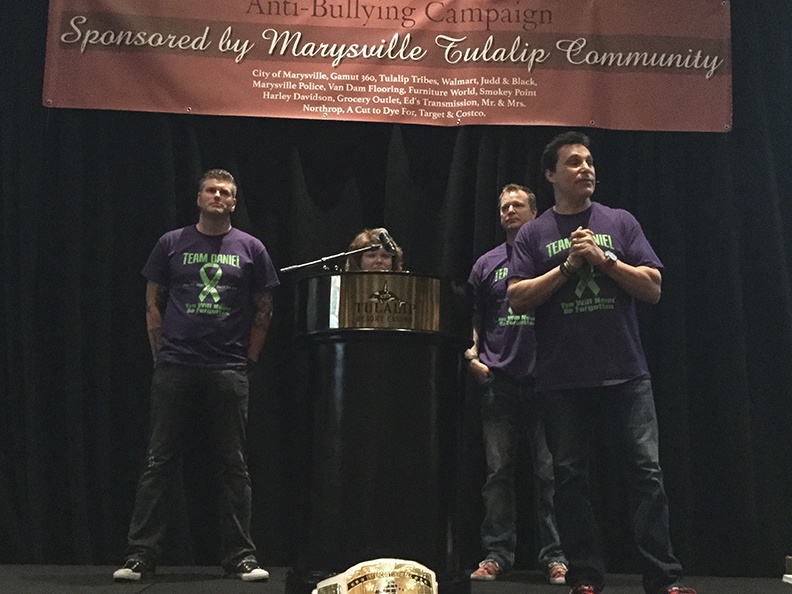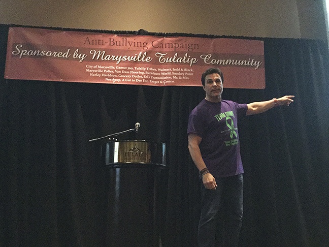 Anti-bullying assemblies were held at all Marysville secondary schools Feb. 21-23, culminating in Thursday’s presentation at the Tulalip Resort. The event drew a standing-room only crowd of hundreds. Marysville police thanked local businesses and community members for donations that funded the program.