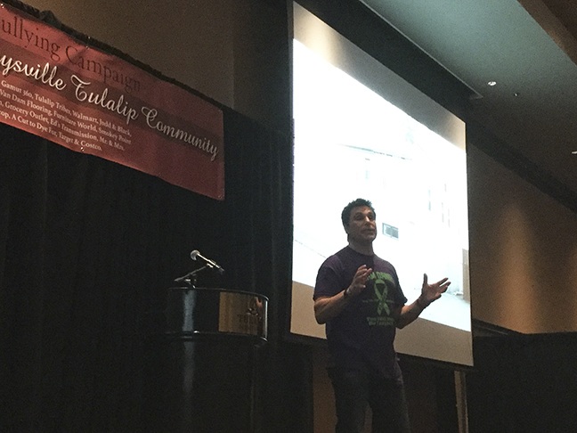 TULALIP – Former World Wrestling Entertainment superstar and four-time boxing champ Marc Mero brought families to tears and hugs Thursday, delivering a powerful performance with his inspiring message to young people to end bullying, and make choices in life that lead to a bright future.