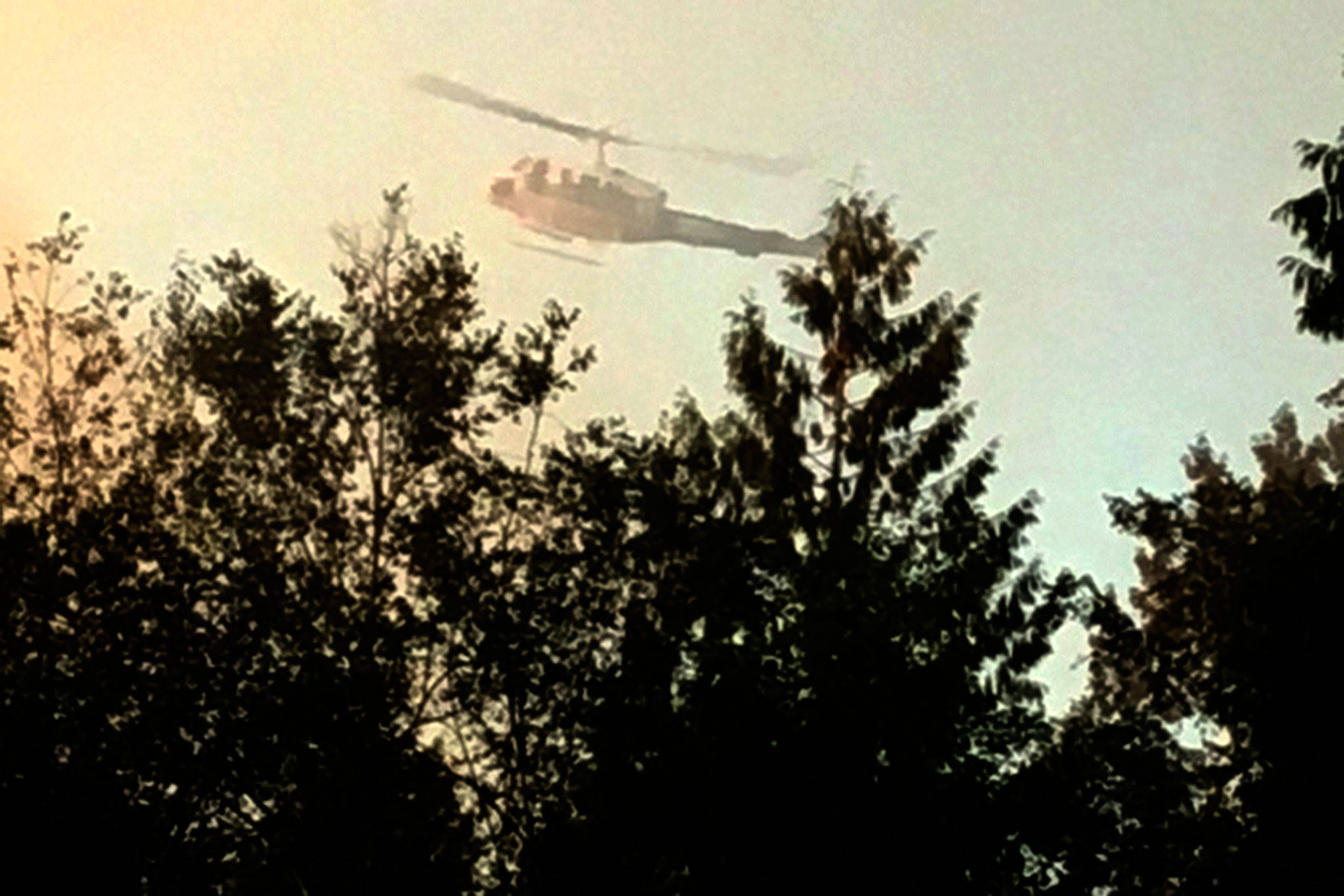 They dumped buckets of water on the blaze to keep it from spreading to any of the homes. “The calvary arrived,” he said. “If the choppers didn’t come we wouldn’t be sitting here talking right now.”