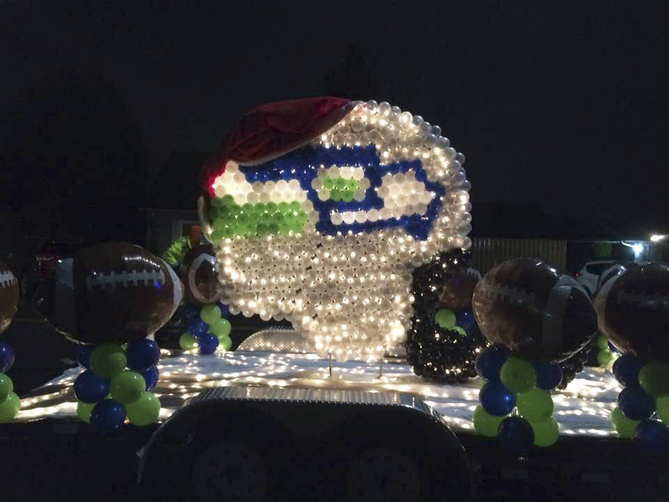 Her most-recent creation was a Seahawks float featuring a large lighted helmet during the Merrysville for the Holidays Electric Lights Parade Dec. 2. The display helped her earn her third Mayor’s Choice Award in the past four years. Her best-ever Disney “Frozen” float wowed parade-goers two years ago.