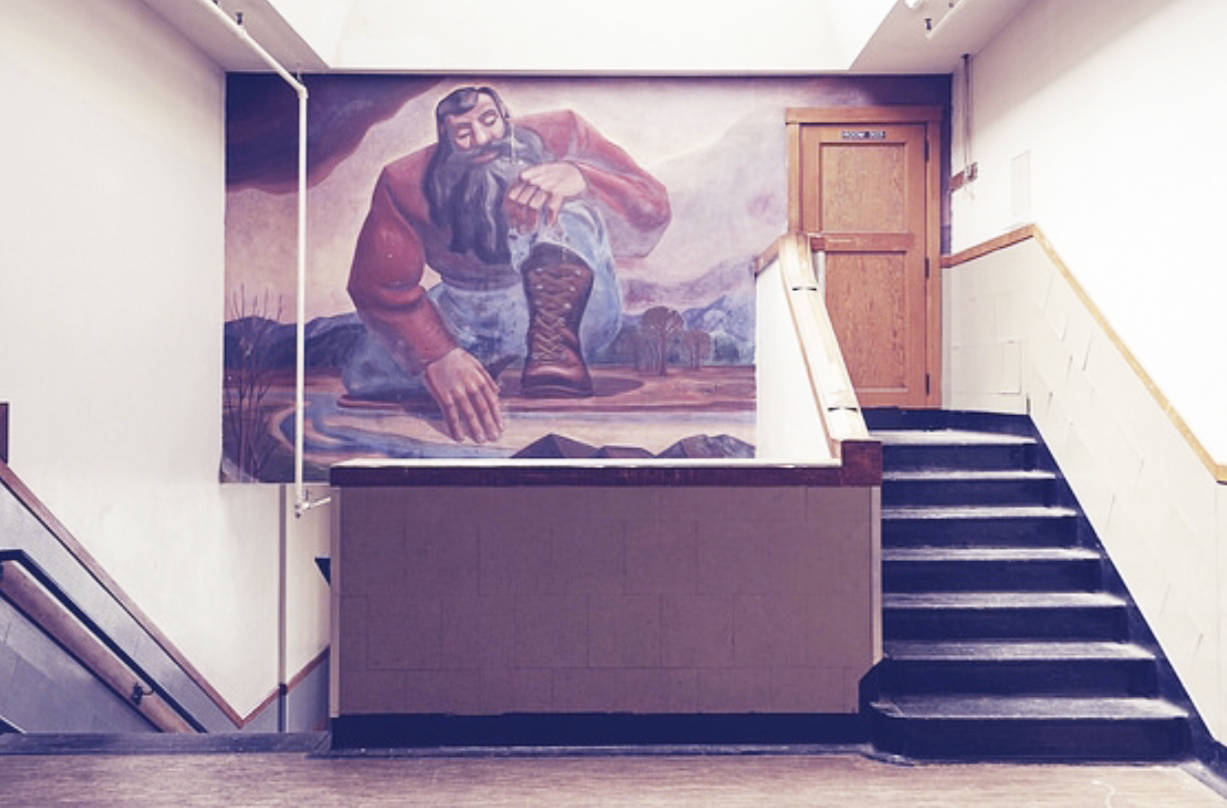 The building also features murals by Washington artist Richard Correll, including “Bunyan at Stillaguamish,” which pays homage to the town’s logging history.