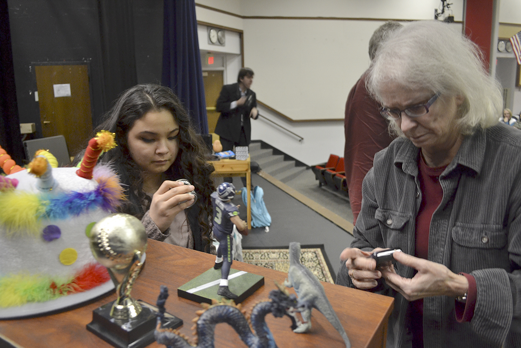 At the “Not In My House” presentation at Lakewood High School Thursday night, three people searched through a bedroom set up on stage.