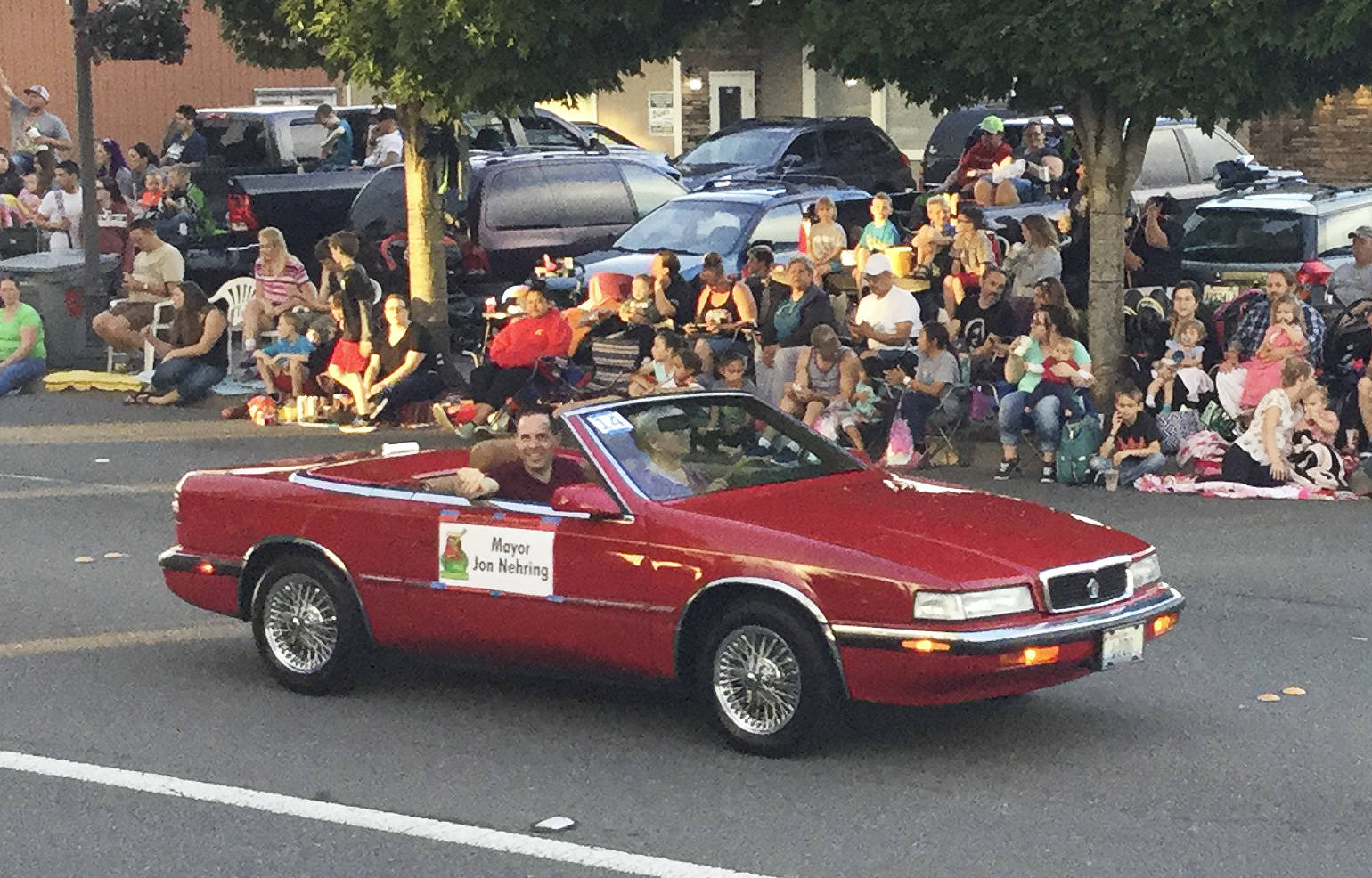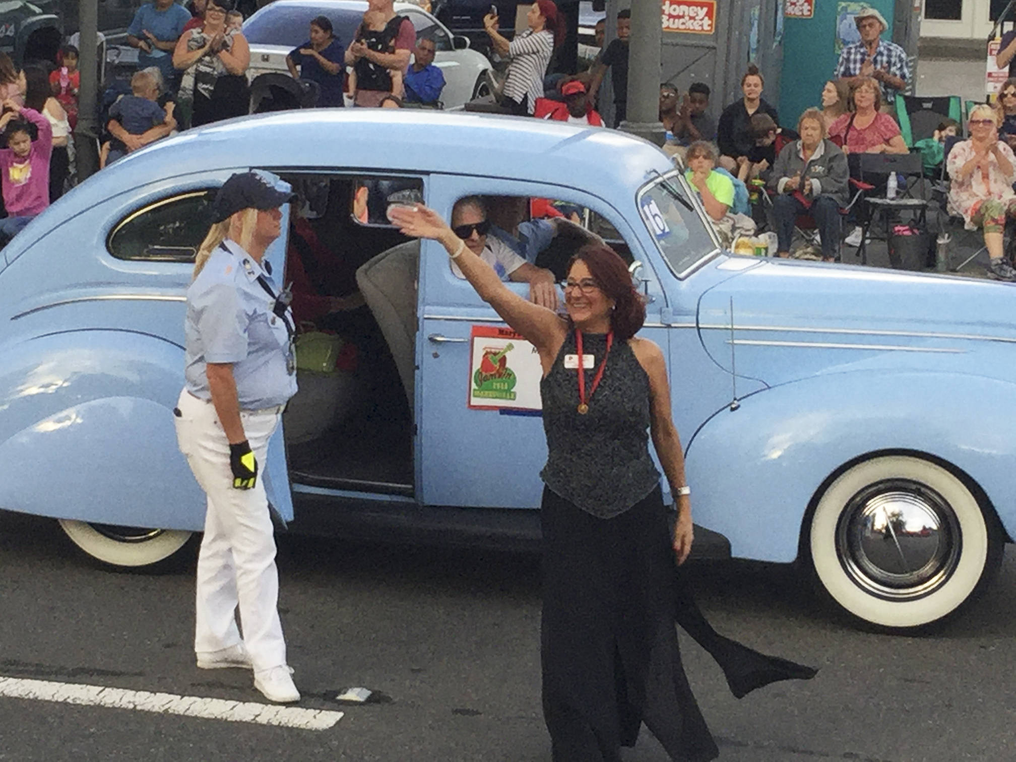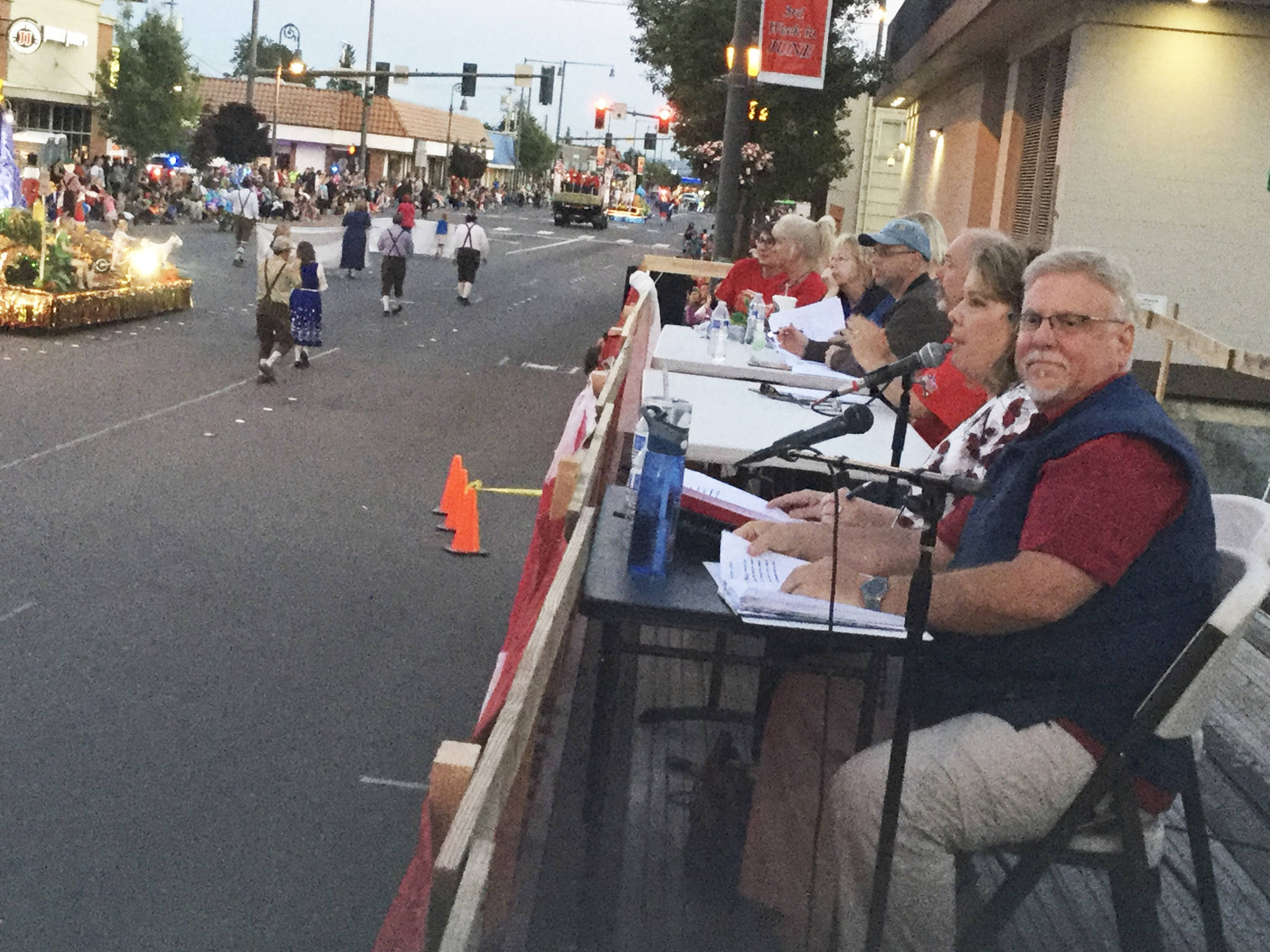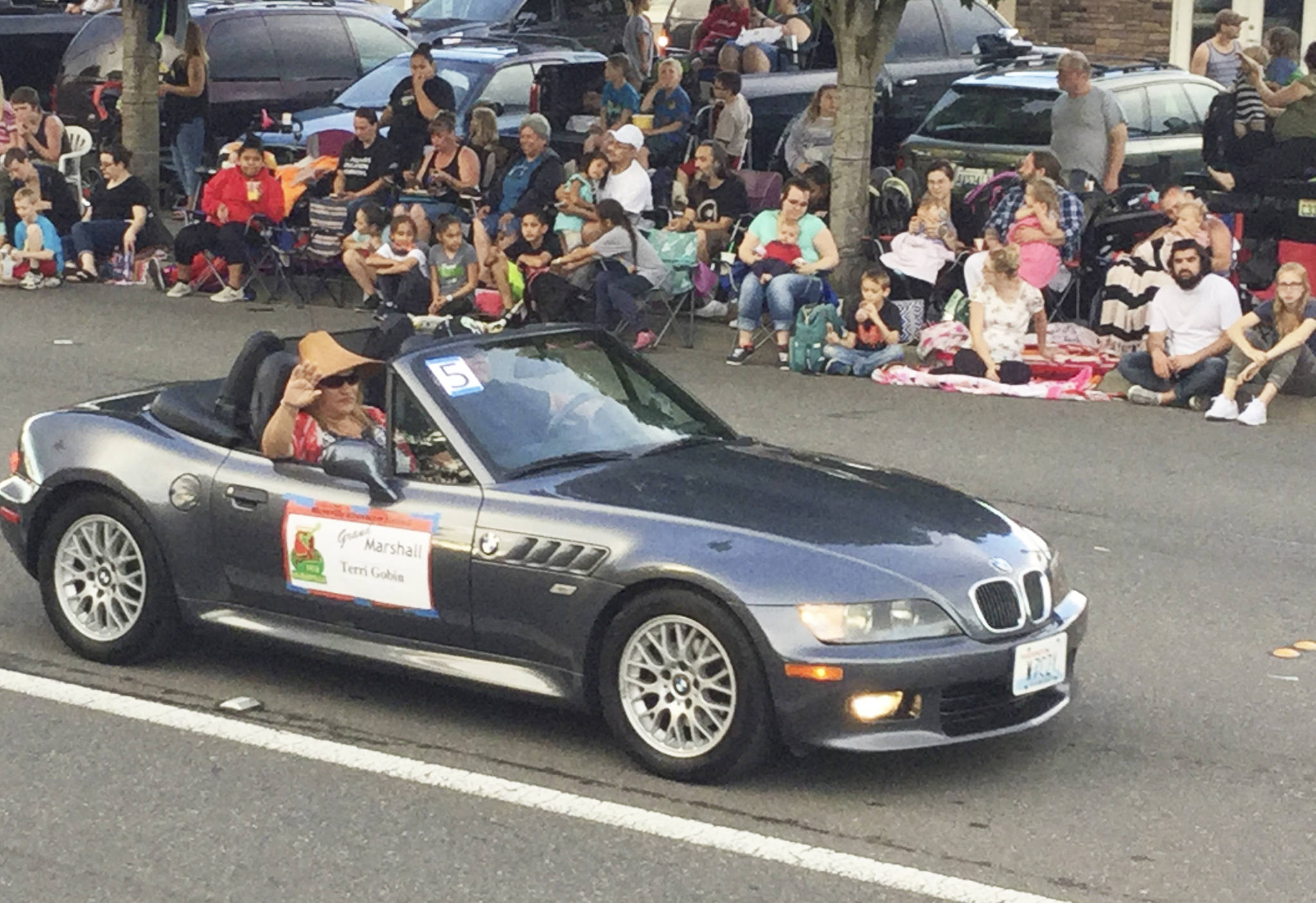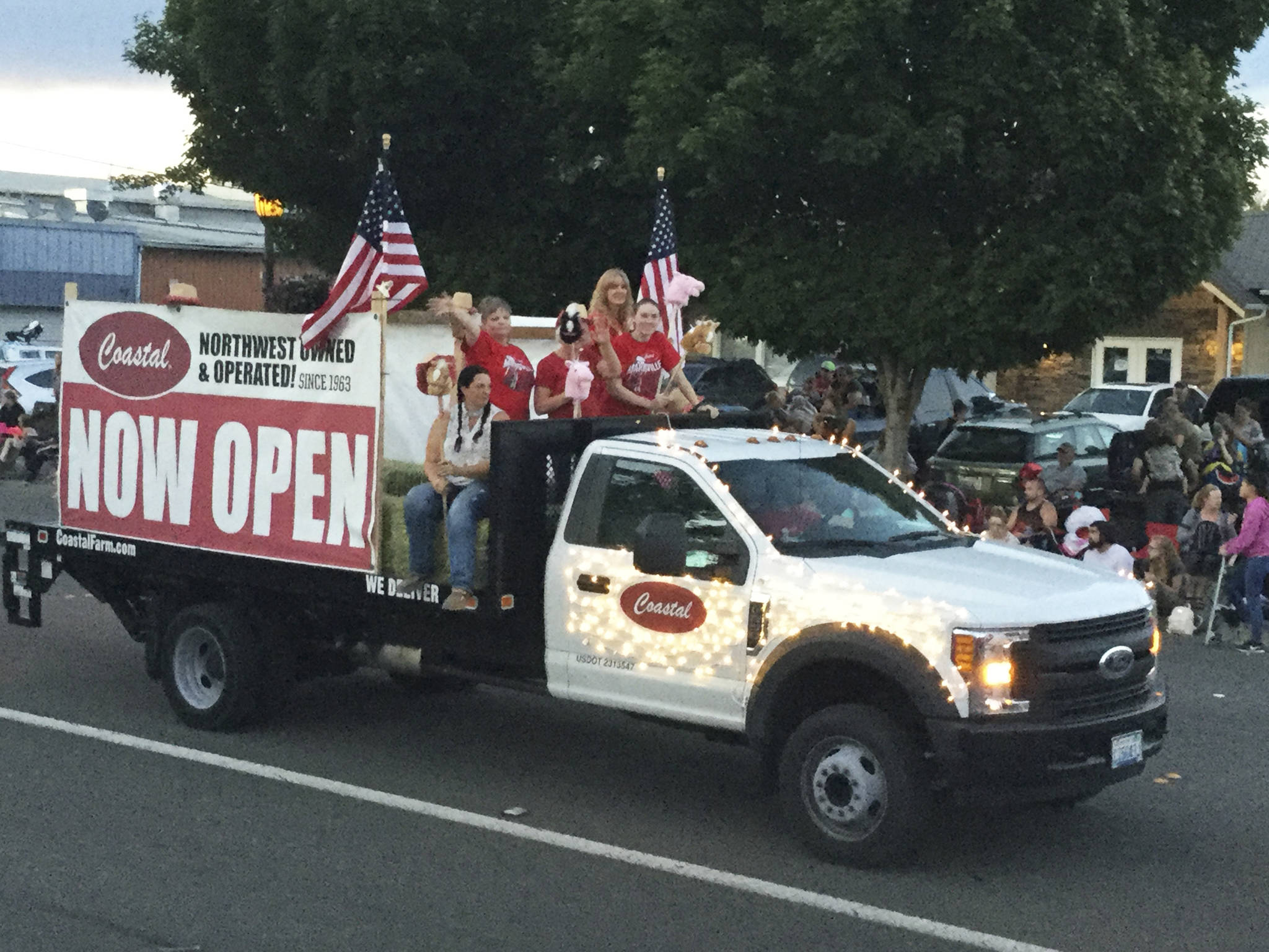 Floats from communities around the Pacific Northwest and British Columbia delivered a dazzling display of music and lights, joined by decorated cars from all eras, gymnasts, high school marching bands, drill teams, Colors of Hawaii island horses and riders – and even a couple of dinosaurs, winners of the earlier Kiddies Parade.