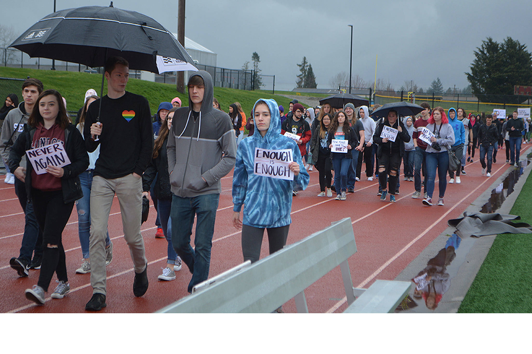 Students walked out of school March 14, but it had a different feeling. Sure, it was to show support for the 17 victims in the shooting at Stoneman Douglas High School in Parkland, Fla. They walked for 17 minutes around the school’s new track. Schools nationwide, including in Arlington and Marysville, planned similar rallies. The one at M-P, where five students died in a murder-suicide, was closed to the public.